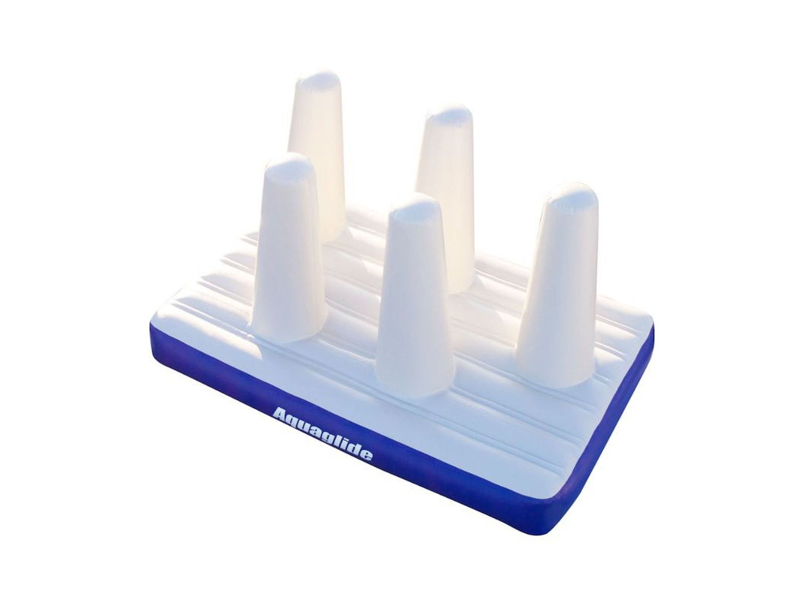 Aquaglide ”Barricade 10” forhindringsmodul med forskudte søjler, man kan zigzagge mellem og udfordre hinanden i at komme først igennem. Minder om ”Blockade 20”, men er mindre og anbefales til max. 4 brugere ad gangen. Velegnet til børn pga. dens lave højde. Min. vanddybde: 1,67 m. Egnet til indendørs bassiner og open water. Mål: L 300 x B 200 x H 150 cm.