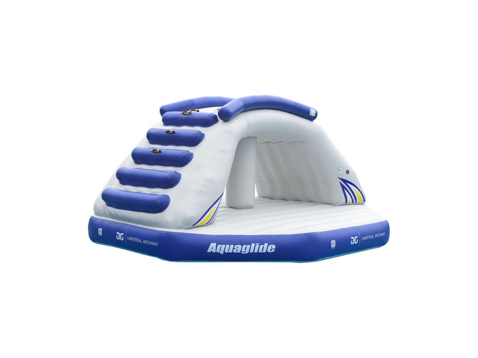 Aquaglide ”Universal Archway” forhindringsmodul til vandpark. Består af en platform, hvor man kan springe i vandet fra, og en bro, man kan kravle henover. Kapacitet: 6 brugere. Min. vanddybde: 1,79 m. Egnet til både indendørs bassiner og open water. Mål: Ø 385 x H 177 cm.