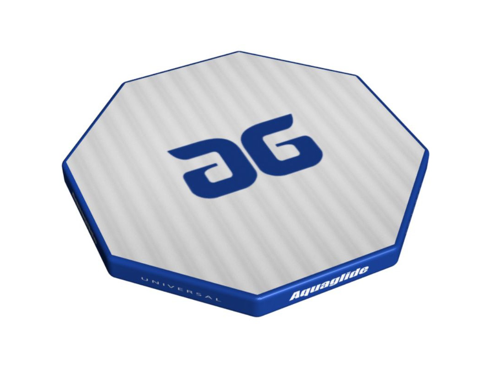 Aquaglide ”Universal” modul til vandparker. Kan bruges som lounge-/solbadningsplatform eller forbindelsesled mellem andre moduler. Kapacitet: 6-8 brugere. Min. vanddybde: 1,05 m. Egnet til bassiner og open water. Mål: Ø 385 x H 30 cm.
