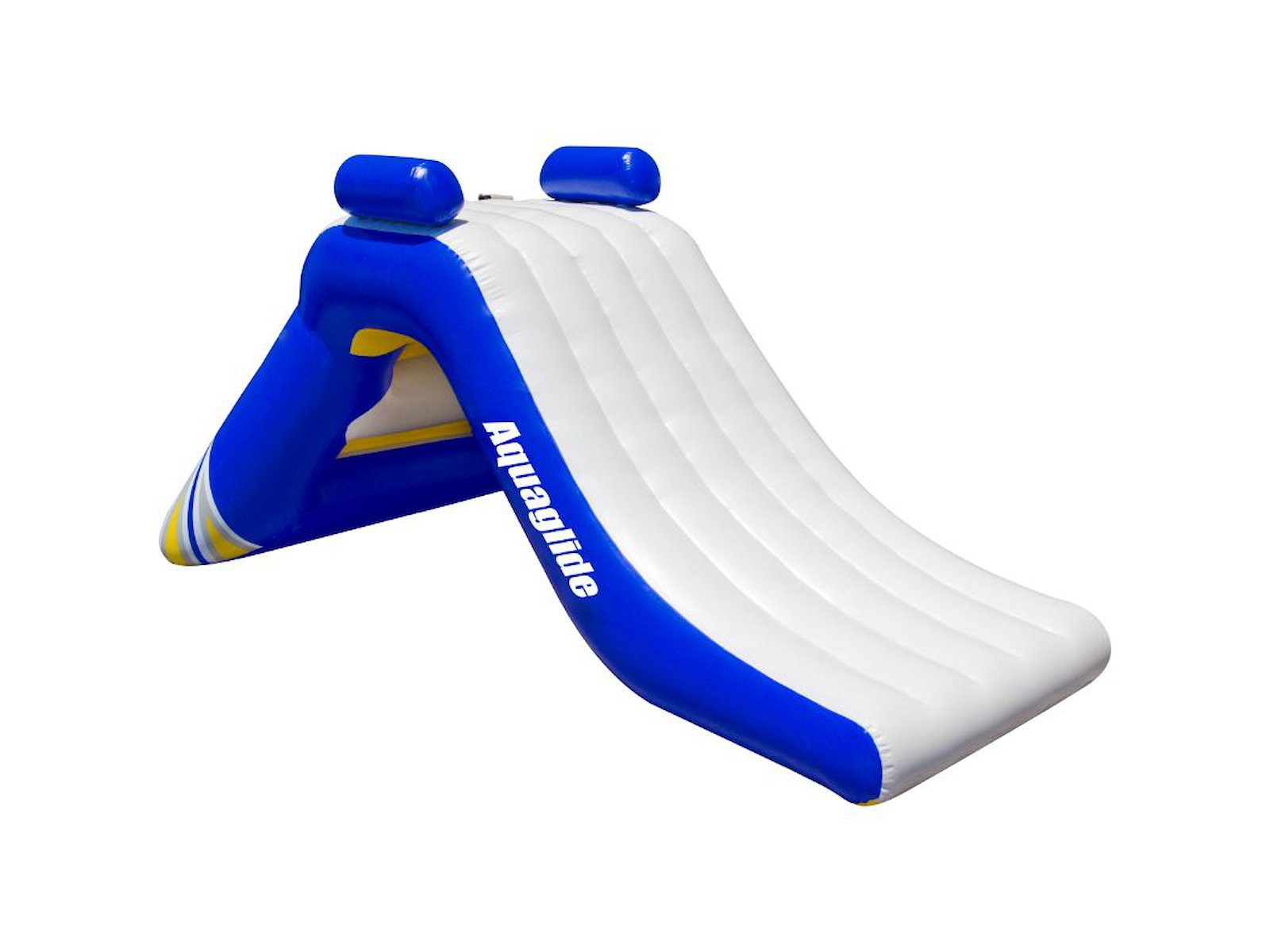 Aquaglide ”Zulu” rutsjebane til vandpark. Et af Aquaglides mest populære moduler. Klassisk rutsjebane med trappe bagpå og en bred rutsjebane, som to børn kan rutsje nedad samtidig. På toppen er der afsikring i begge sider, så man ikke falder ud over kanten. Min. vanddybde: 1,70 m. Egnet til både indendørs og udendørs brug. Mål: L 328 x B 198 x H 160 cm.