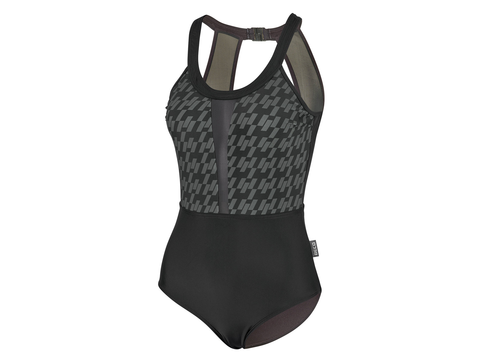 BECO ”Pepita” Clip Back Mesh badedragt til kvinder, B-skål med indsyede indlæg. Elegant med nakkelukning og net detalje som er både stilfuld og funktionel. Den har en mellemhøj benuddskæring, der sikrer en flatterende pasform. Fremstillet af 80% polyamid, 20% elastan.