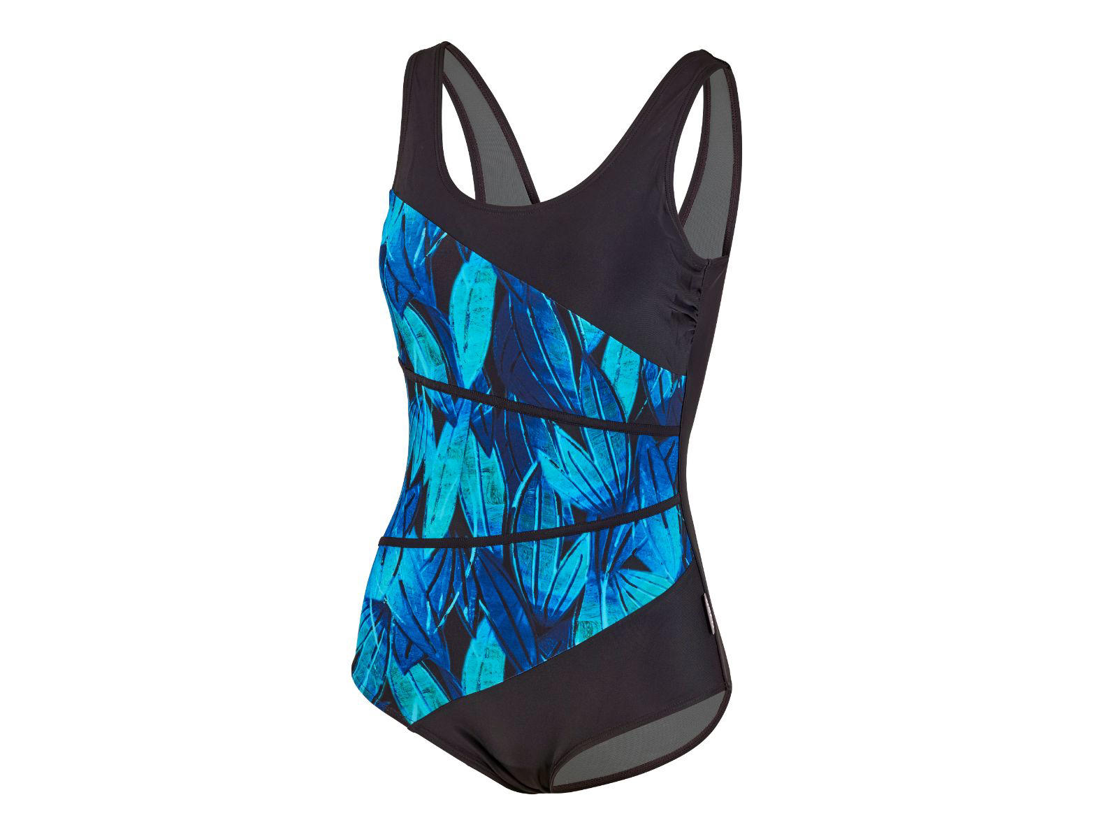 BECO "Fresh Oasis" badedragt til kvinder. Iøjefaldende design med turkisblåt print på sort baggrund. Med behagelige, brede skulderstropper og dyb rygudskæring. Lavet i en blød og stærk polyamid-/elastanblanding. Formende og støttende Powermesh-foring i polyester-/elastanblanding. Med støttebånd under barmen og faste skåleindlæg. C-skål.