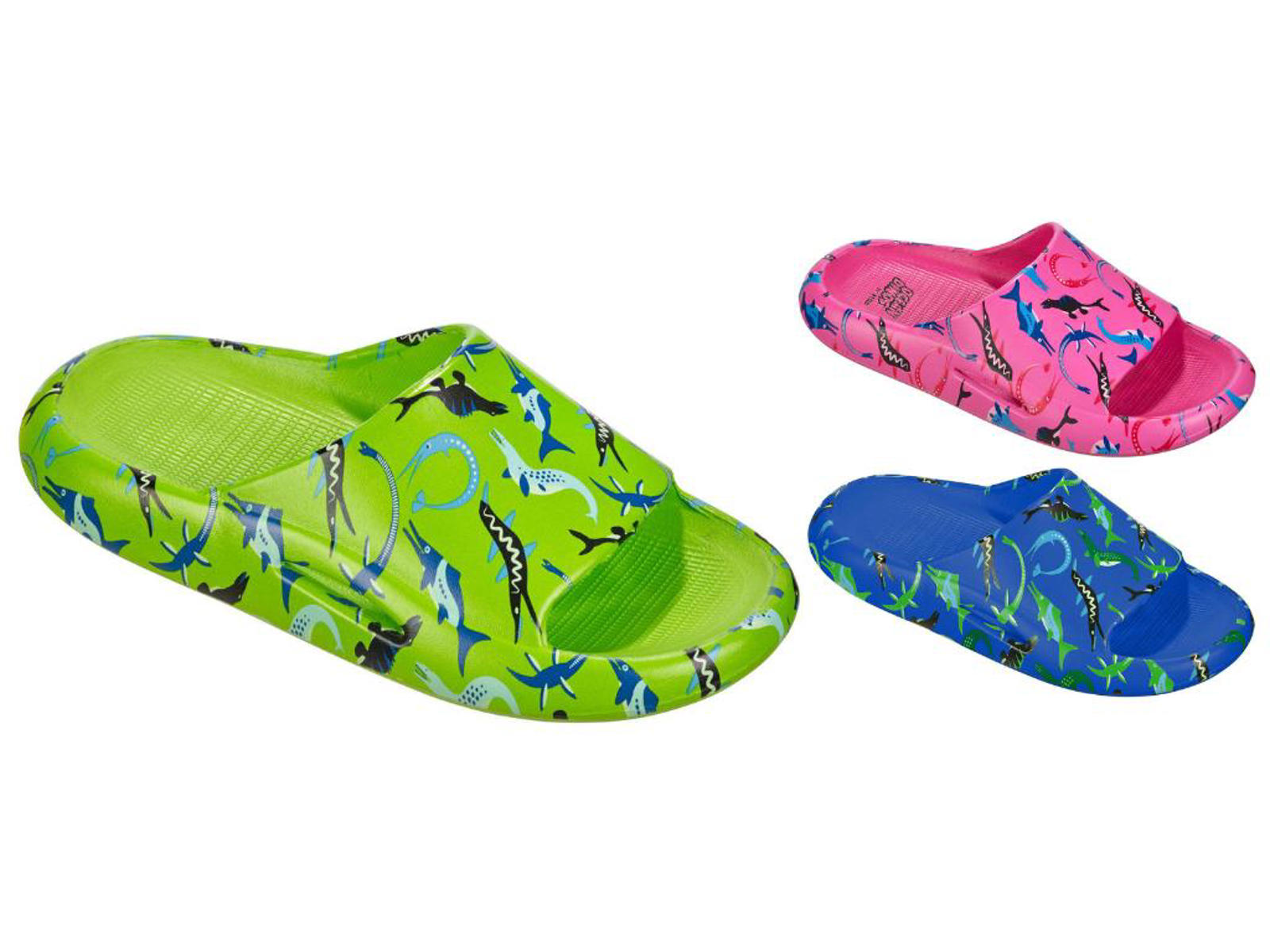 BECO "Ocean Dinos" badesandaler til børn. Lavet i EVA og er superbløde for de små barnefødder. Med sejt havdyrsprint fra BECOs nye Ocean Dinos-kollektion. Struktureret fodseng sikrer et godt fodfæste - også når badesandalerne er våde. Sandalen er støbt i ét stykke.