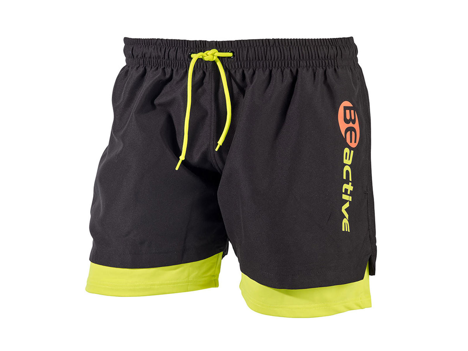 - Badeshorts med elastisk linning og bindebånd på fronten