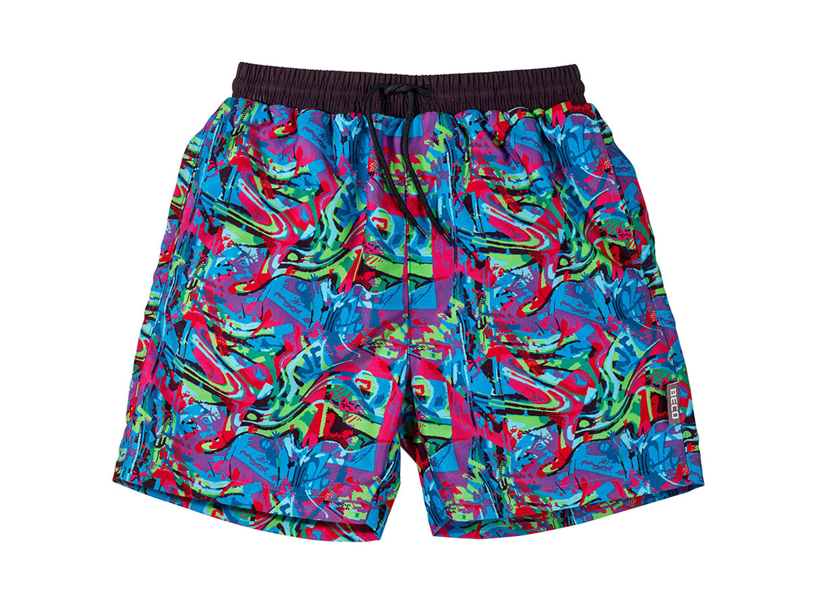 BECO "Multifarvet print" badeshorts til drenge. Flot iøjefaldende, flerfarvet collage mønster, der giver et unikt og dynamisk udtryk. Løs pasform. 100% polyester. Med inderbuks. Elastisk talje med bindebånd. Tre praktiske lommer.