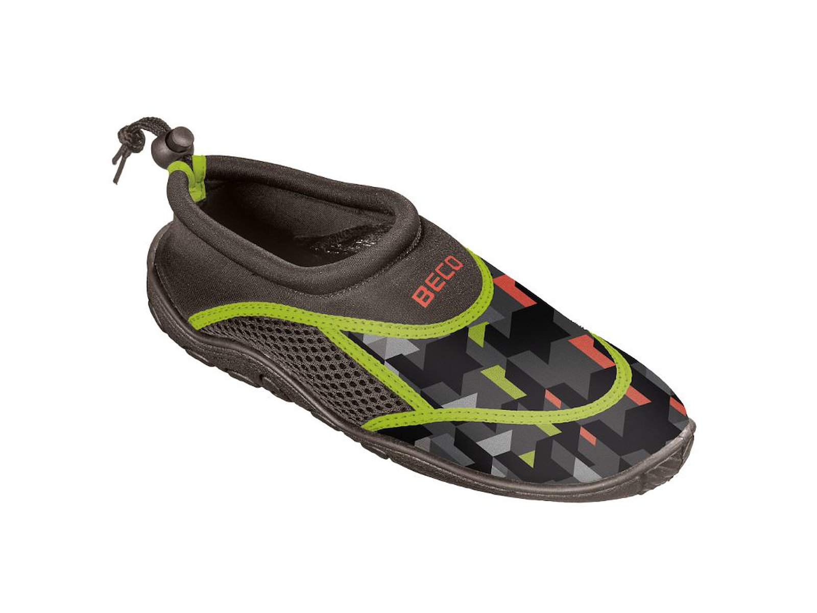 BECO neoprenbadesko med skridhæmmende gummisål. Skoen har justerbar spænde i anklen, som sikrer, at skoen sidder godt fast på foden. Flot design med sporty print og meshdetaljer.