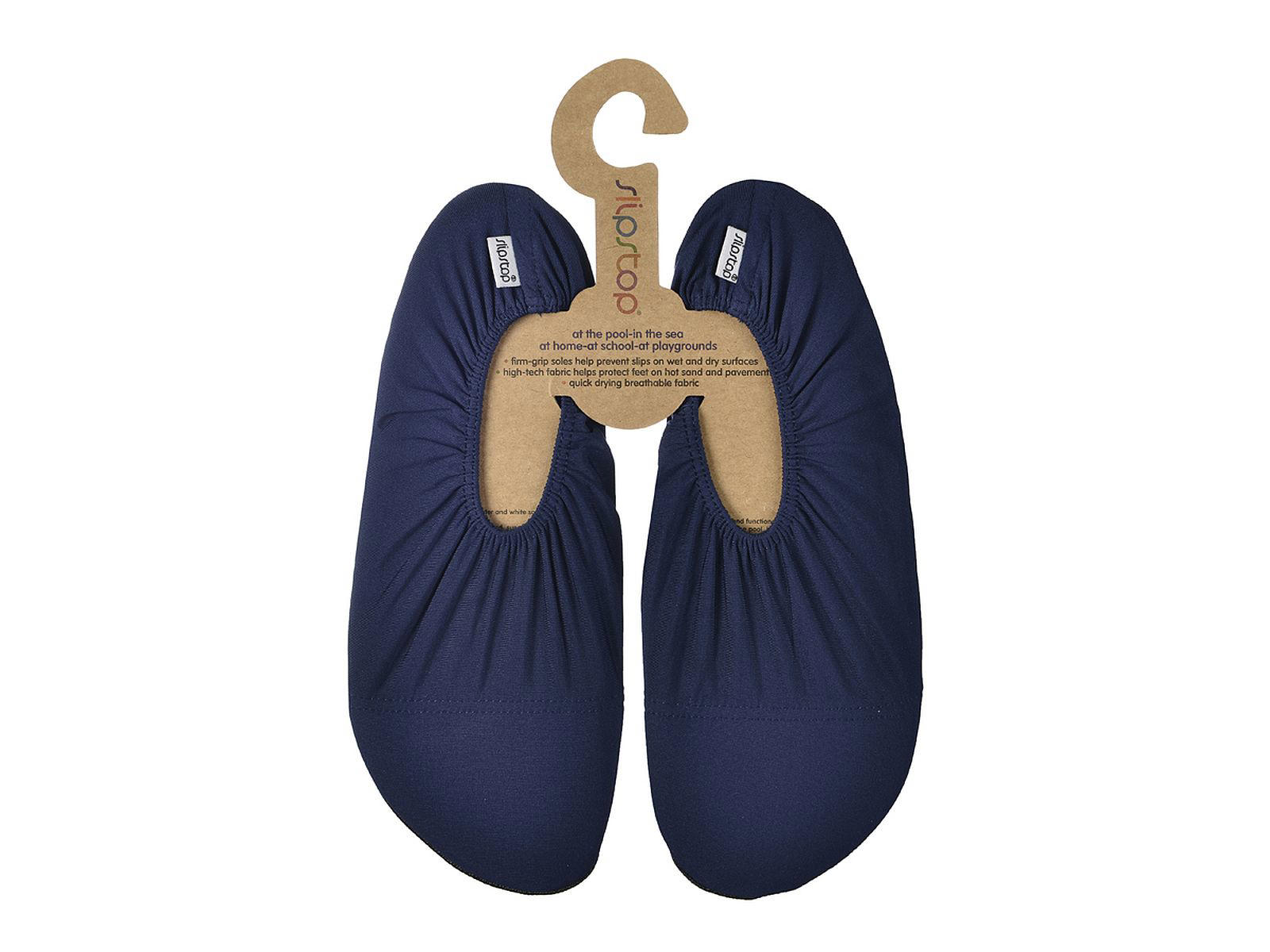 ”Slipstop” er lette, fleksible og behagelige badesokker med åndbart, hurtigtørrende stof, der gør dem ideelle til brug i vand. Specialsålen giver et godt greb på både vådt og tørt underlag, samt beskyttelse mod varmeoverførsel i sand. Praktiske og nemme at tage på og af. Slipstop børnestørrelser: XS = 21-23 | S = 24-26 | M = 27-29 | L = 30-32 | XL = 33-35. Slipstop voksenstørrelser: XS = 35-36 | S = 37-38 | M = 39-40 | L = 40-41 | XL = 42-43 | XXL = 43-44.