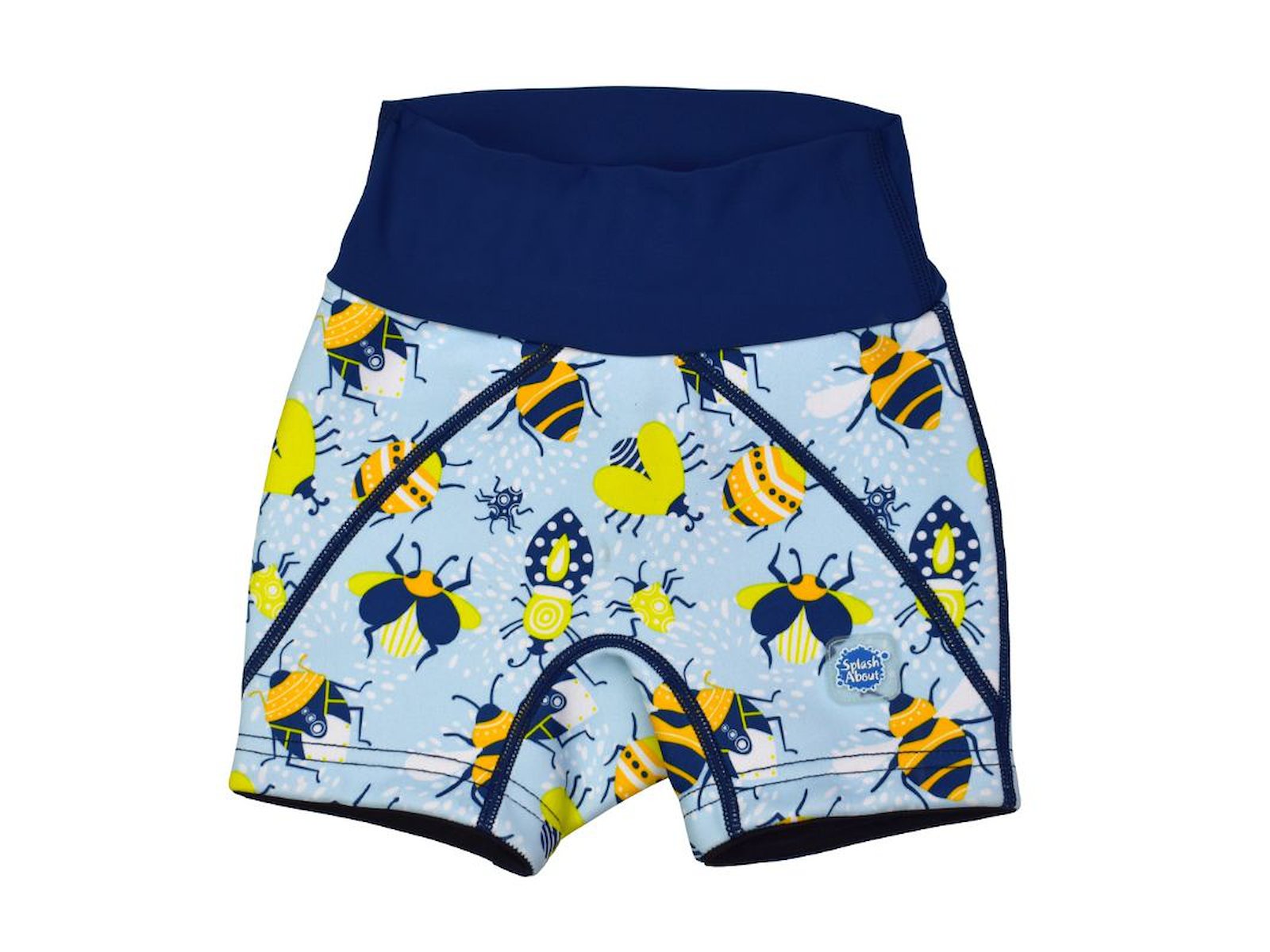 Splash About "Splash Jammers" blebadebukser med sejt print til børn. 100% sikring mod lækage. Giver den samme sikkerhed som den en Happy Nappy-blebuks, men har et mere "voksent" og sporty design. Ergonomisk, behagelig pasform med tætsiddende rib i taljen og silikone ved lårene. Kan bruges alene eller med en svømmeble under.