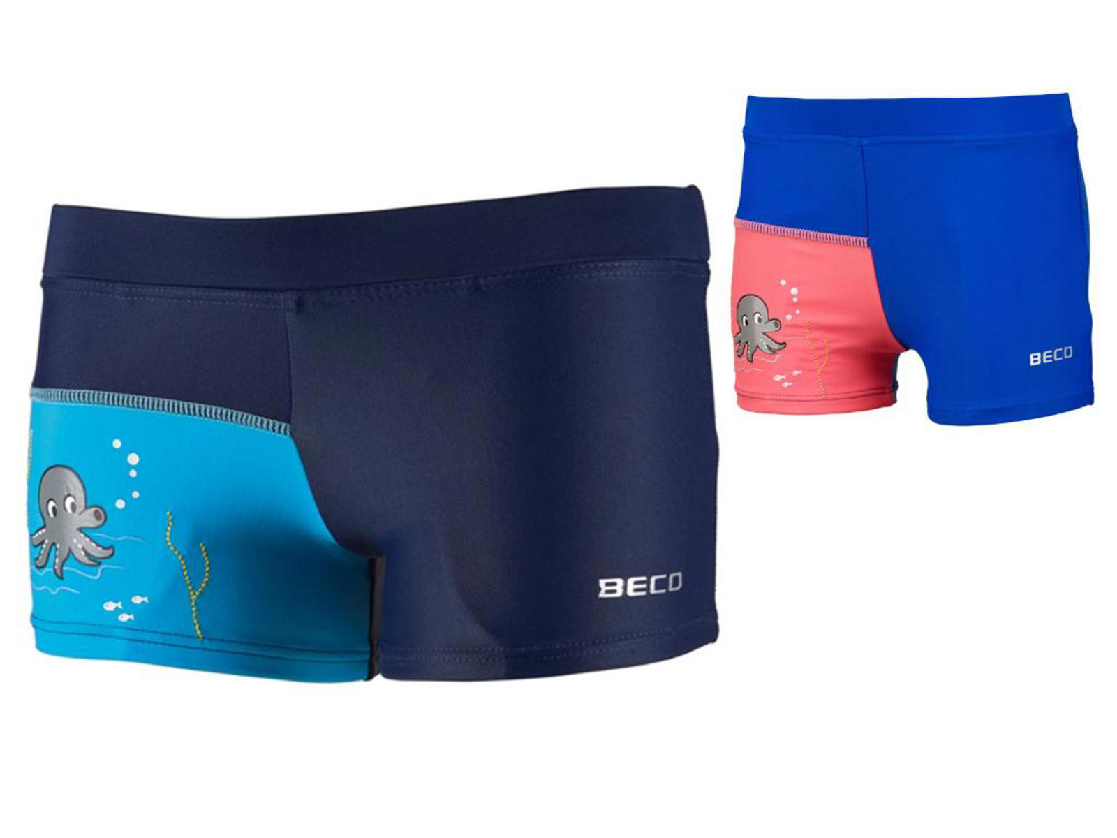 BECO badebukser til drenge. Bukserne er kendetegnet ved høj komfort og et sejt design. Badebukserne er velegnet til brug på stranden og til leg og sjov i svømmebassinet. Denne model har en sød blæksprutte trykt på det ene ben.