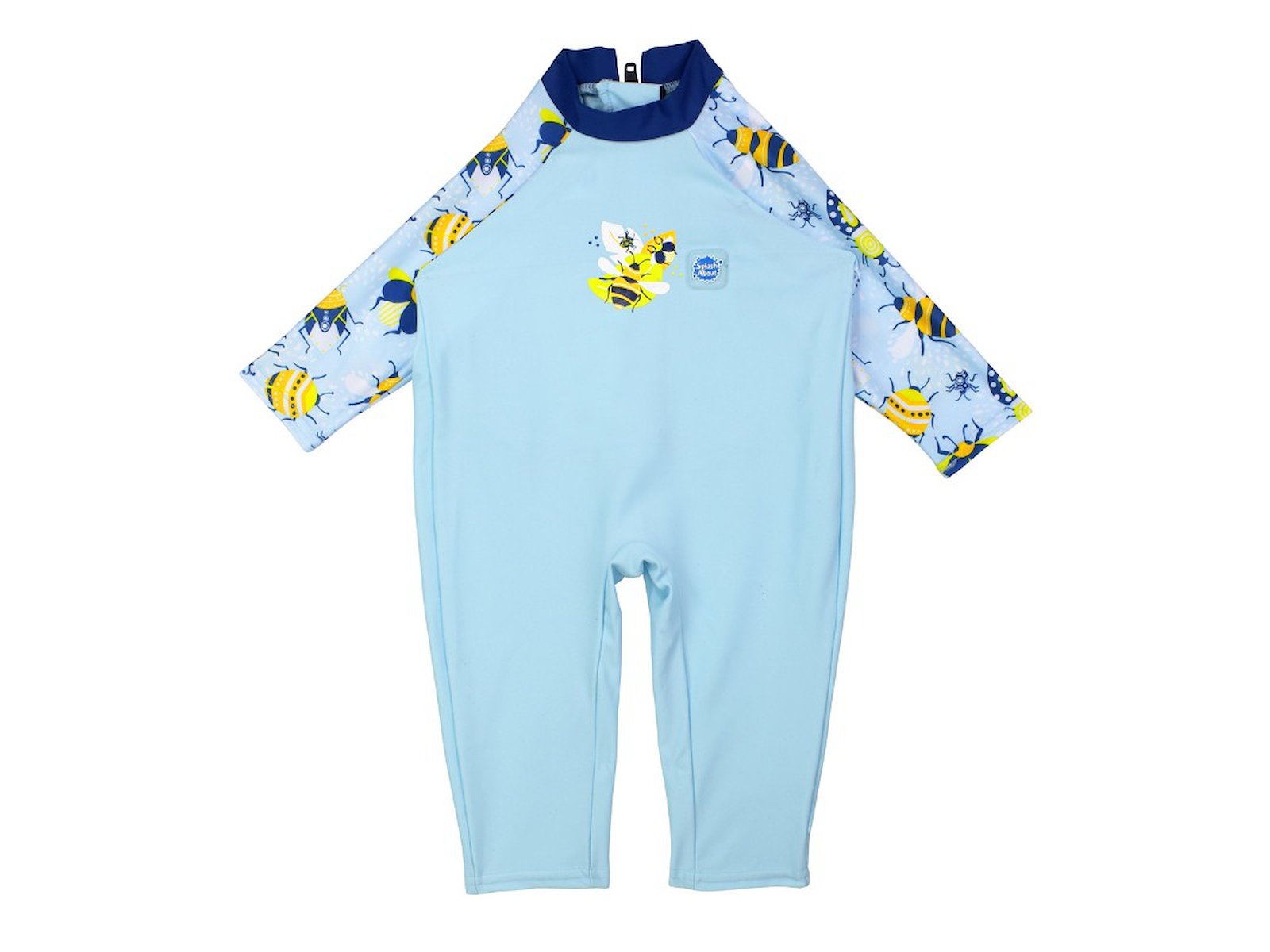 Splash About "UV All In One" UV-dragt, der er let som en fjer og dejlig blød for barnet at have på. Superelastisk med løs pasform og hurtigtørrende. Har lange ærmer og ben og beskytter mod solens skadelige stråler. Giver SPF50+ beskyttelse og er oplagt til ferier sydpå i den skarpe sol. Med lynlås i ryggen, som gør det nemt at få dragten på og af.