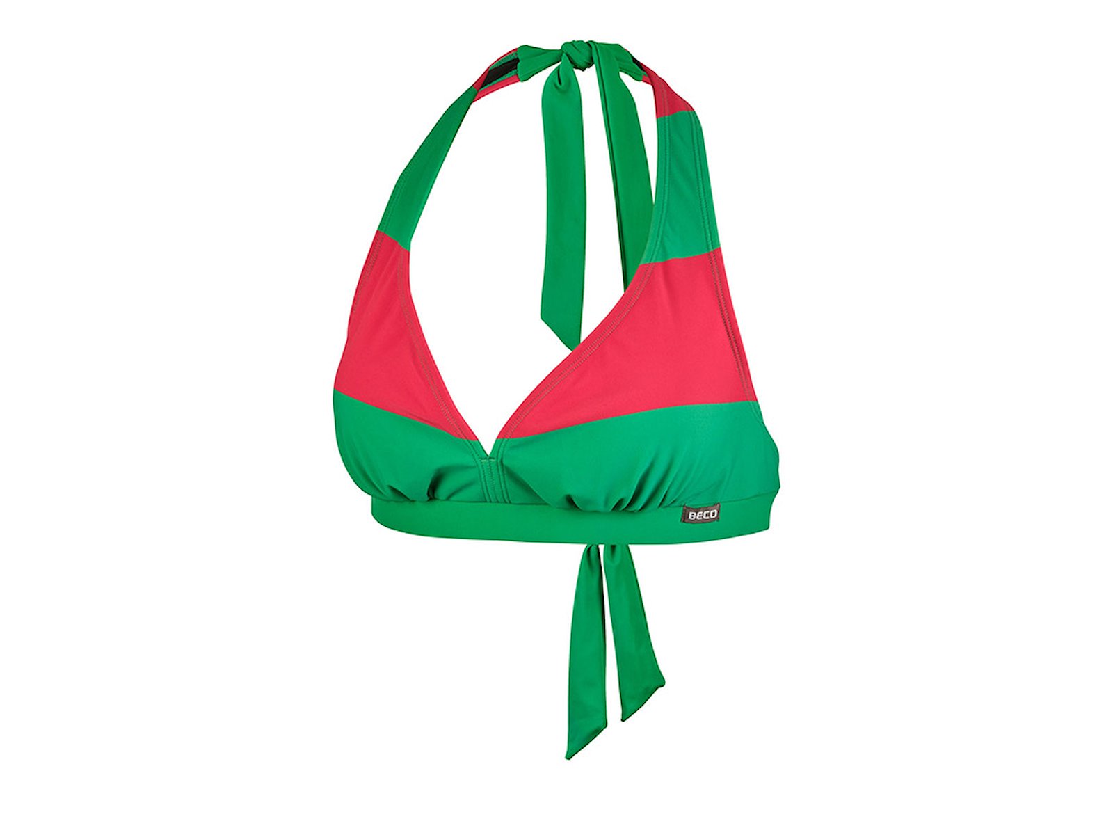 BECO Hawaii Stripes Halter Neck bikinitop kombinerer komfort, fleksibilitet og et sporty udtryk. Toppen er fuldt foret og har udtagelige indlæg, som giver mulighed for justerbar støtte og naturlig form. De brede bindebånd i nakke og ryg gør det nemt at tilpasse pasformen, mens det pink/grønne design skaber et frisk og farverigt strandlook.