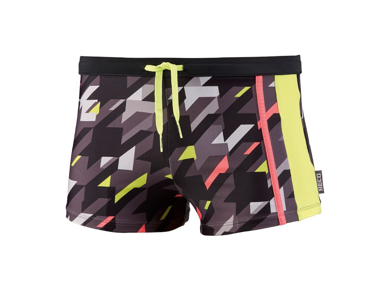 BECO badebukser med korte ben og et flot grafisk print med kontrastfarver. Fremstillet i en blød og elastisk polyamid-/elastanblanding med foring foran. Bukserne har bindebånd i taljen, hvilket sikrer en god pasform.