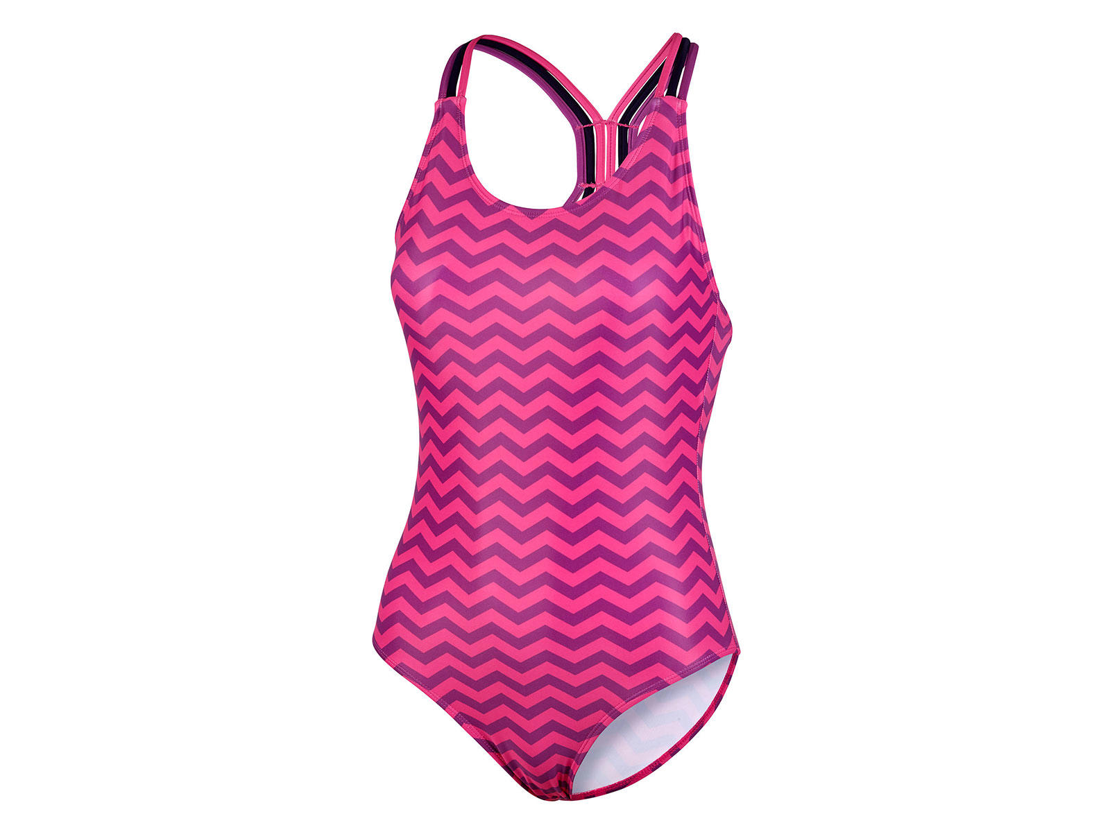 BECO ”Zigzag & mix it” badedragt til kvinder. Moderne og iøjefaldende touch til designets flotte zigzag mønster i farverne pink og lilla. Stropdesign på ryggen og B-skål. Fuld foring og udtagelige indlæg sikrer komfort og støtte. Lavet af 85% polyester, 15% elasta.