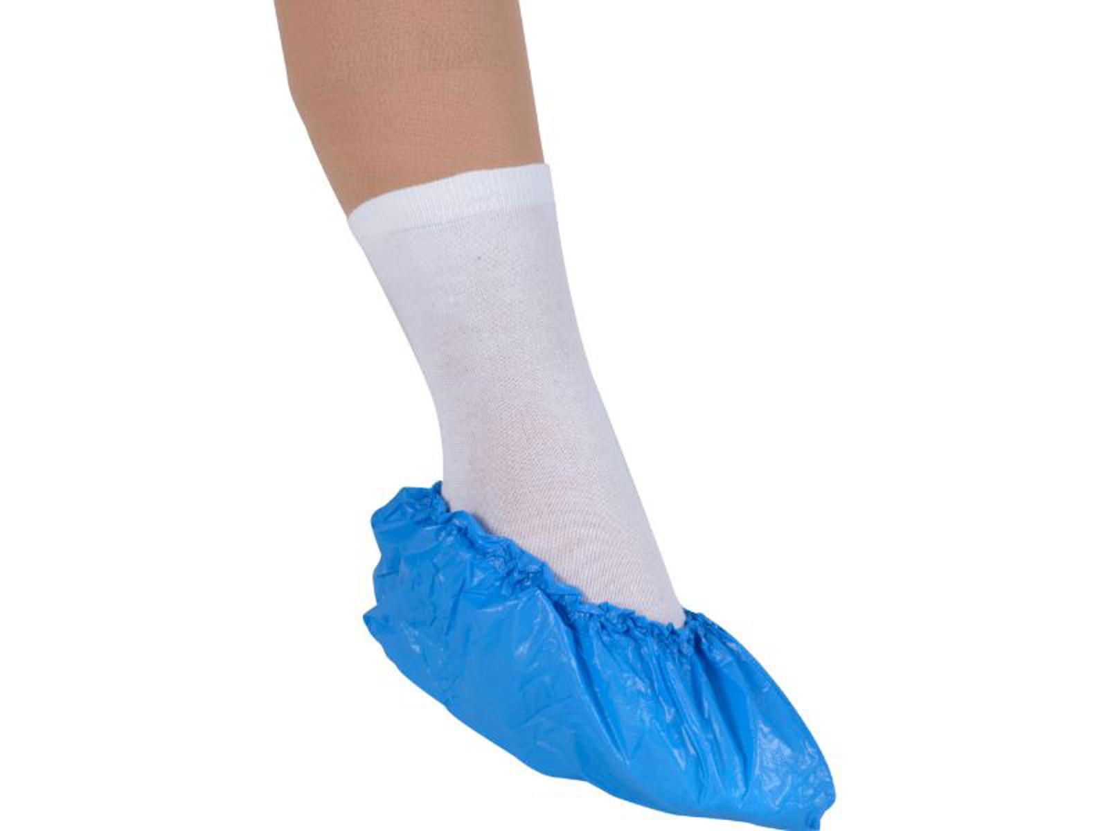 Abena blå engangsovertrækssko. Beskytter fodtøj og forhindrer tilsmudsning af gulve. Med elastik og præget overflade med skridhæmmende effekt. Antal: 2000 stk. L36 x B15 cm. Usteril. Lavet af LDPE. Indeholder ikke latex.