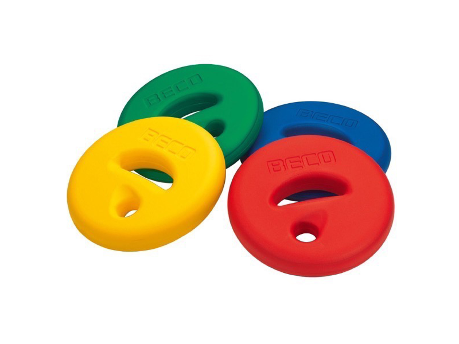 BECO "AquaDisc" træningsredskab til aquafitness. AquaDisc'ene har gribehuller til fingrene, som sikrer et godt, fast greb. Til træning af koordination, styrke, udholdenhed og fleksibilitet, og brugeren kan selv regulere modstanden i vandet afhængig af, hvordan skiverne holdes. Lavet i PE-skum med coated overflade. Ø23 cm. Sælges i par á 2 stk.