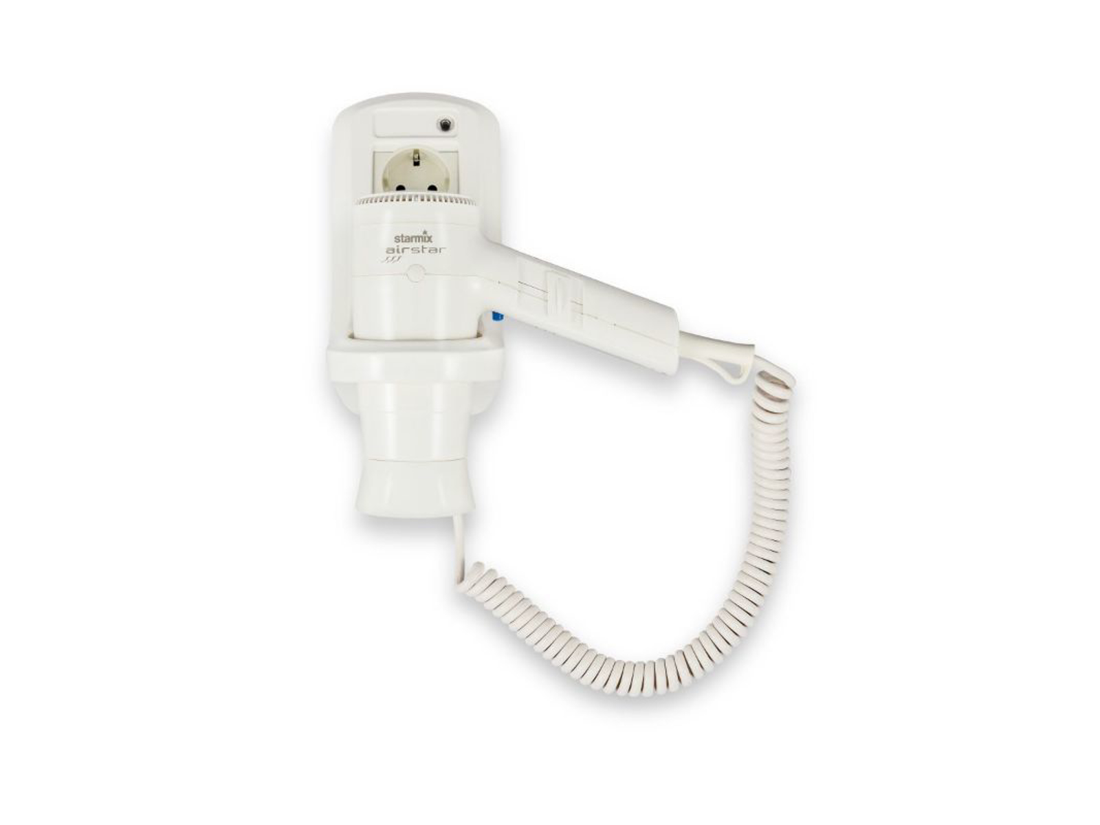 Starmix ”HFTW 12 S” håndholdt hårtørrer til omklædningsrum, baderum og hoteller. Effekt på 1200W og med fønnæb. Lavet i ABS-plast. Tre forskellige blæseindstillinger og on/off-knap. Spiralledning med længde på 0,5-2,0 m. Med vægholder med sensorkontrolleret lys og indbygget stikkontakt.