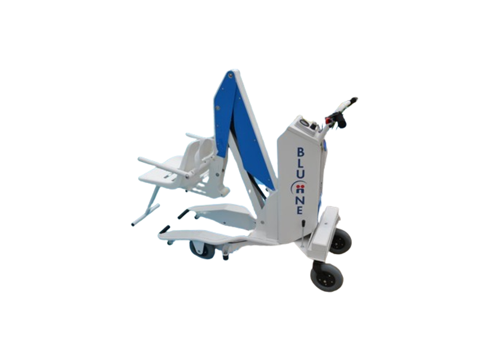 DigiProject ”BluOne Basic” mobil handicaplift til svømmebade. DigiProjects første handicaplift og den første mobile handicaplift på markedet. Bestseller siden 2005. Nem at bruge. Kompakt design og nem at manøvrere rundt. Med hovedstøtte, justerbare armstøtter og topunktsele. Kan bære op til 120 kg.
