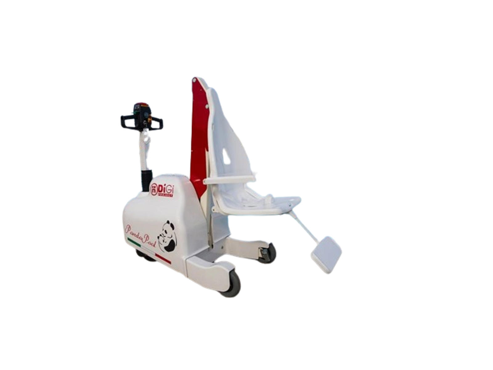 DigiProject “PandaPool” mobil handicaplift til svømmebade. Vores bedste og mest innovative handicaplift med mange smarte funktioner, som giver den ultimative brugeroplevelse. Motoriserede hjul med automatisk bremsesystem. Med nødstopsknap og integreret batterioplader med LED-indikator. Maksimal belastning på hele 150 kg.