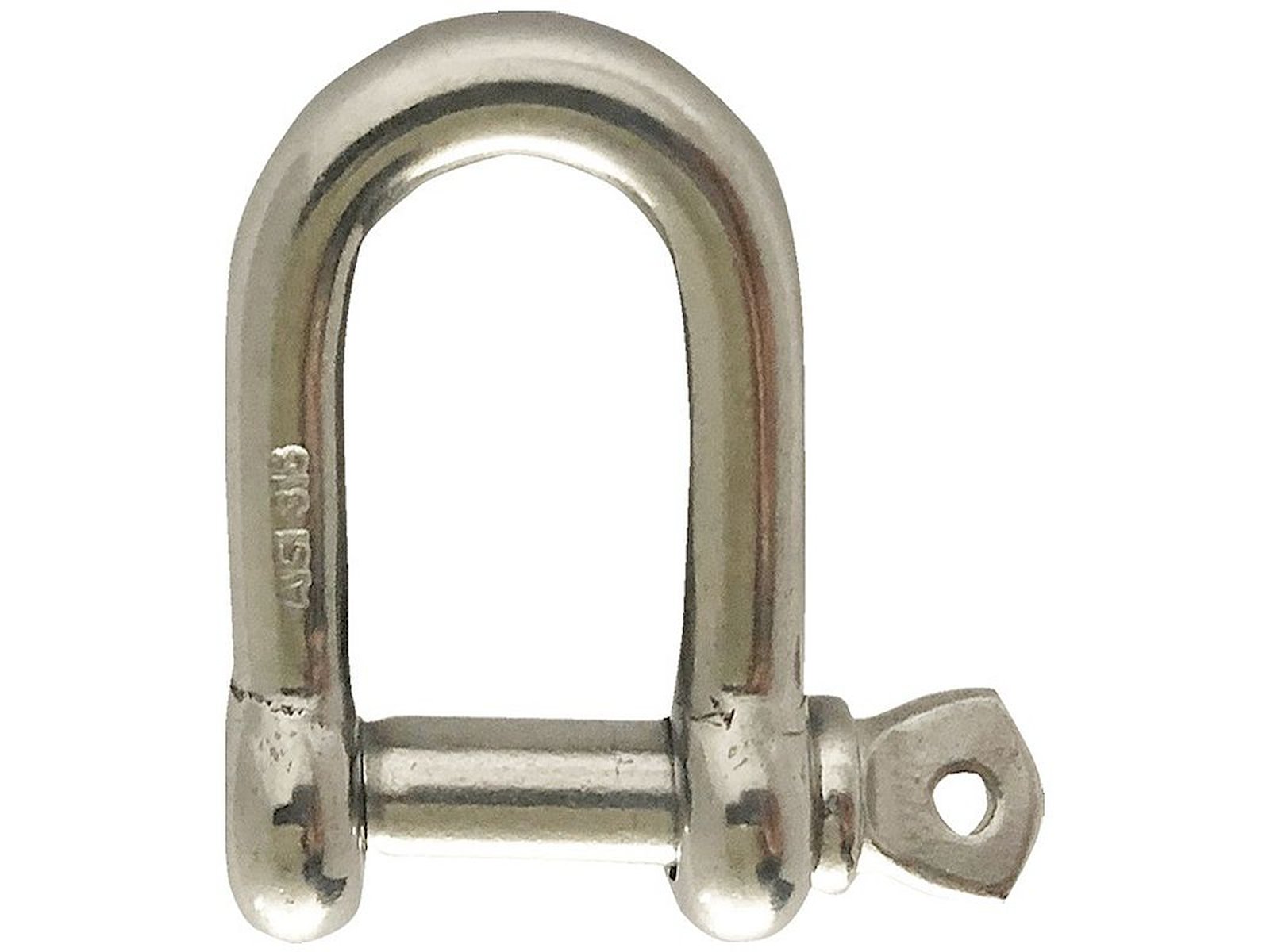 Sjækel i rustfrit stål. Størrelser 5 og 8 mm. Mange anvendelsesmuligheder. 5 mm: brudstyrke 1000 kg. 8 mm: brudstyrke 2200