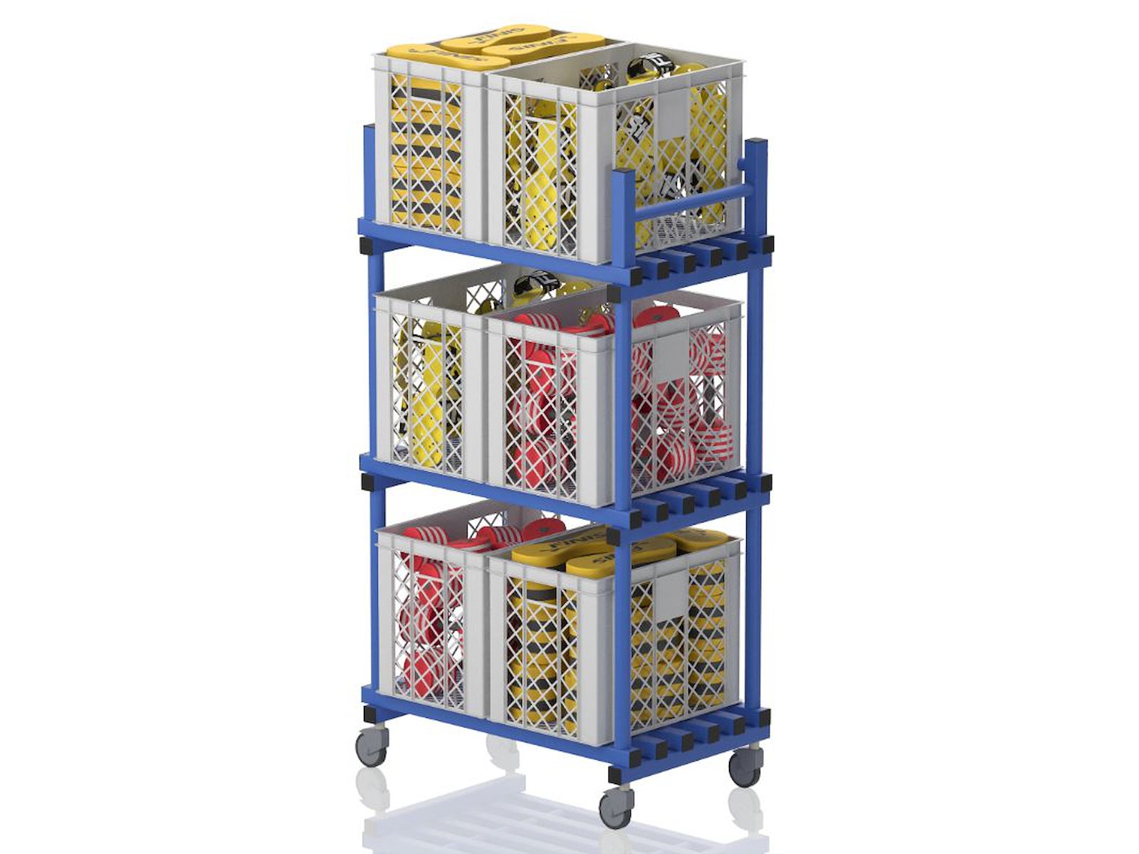 Vendiplas MS960/60-vogn med tre faste hylder til opbevaring af diverse udstyr til svømning og aquafitness. Passer til 6 x Vendiplas-opbevaringskurve. Lavet i slidstærkt og UV-/klorbestandigt PVC, som stort set ikke kræver nogen vedligeholdelse. Designet til vådrum og tåler temperaturer fra -40°C til +80°C. Mål: B 97 x D 60 x H 177 cm.