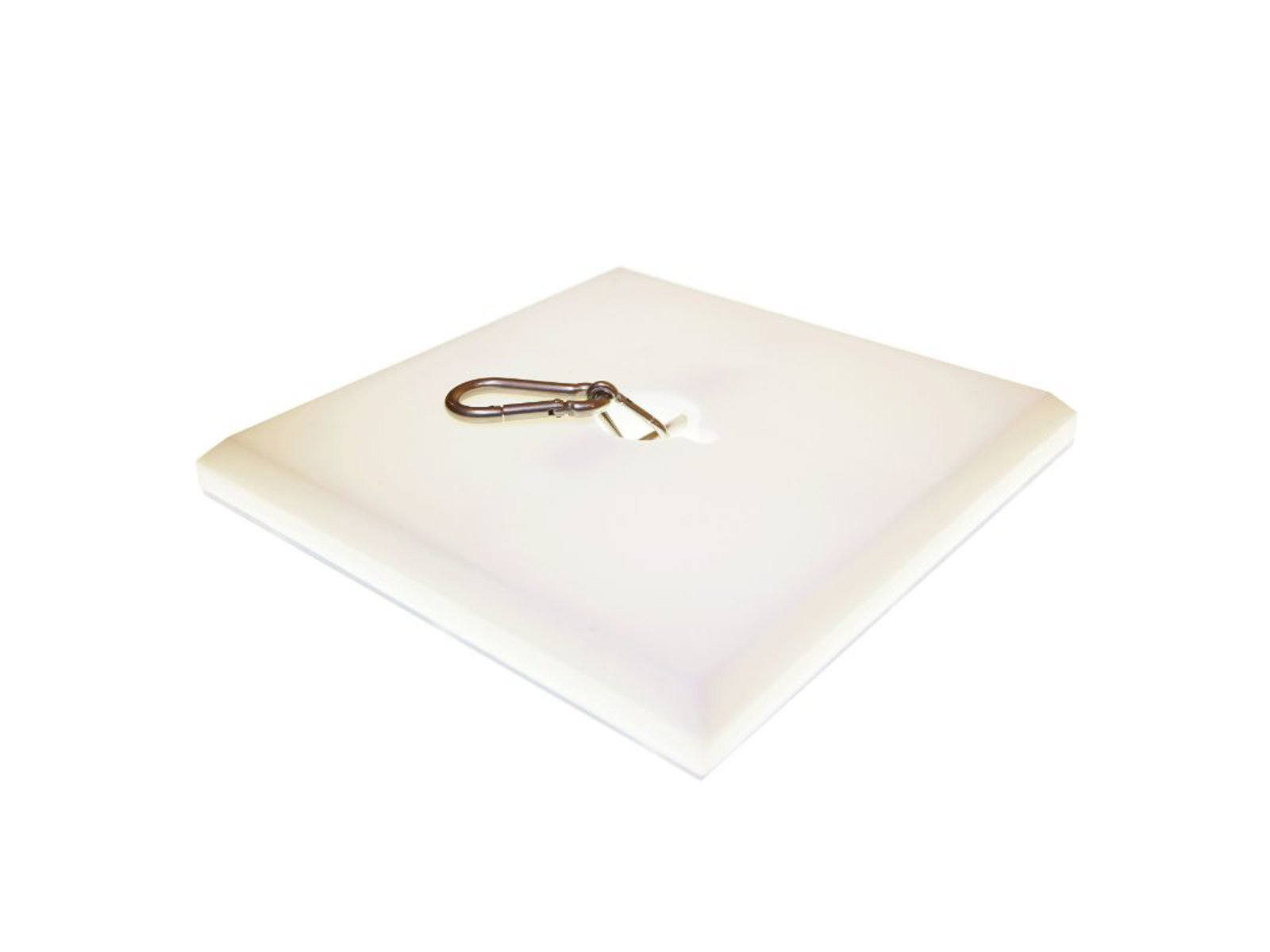 Malmsten ”Ankersystem til vandpolo” 30 x 30 cm plast plade, til fastgørelse af frigivningssystem til vandpolo. Udstyret med aftagelig karabinhage. Fastgøres til bassinbunden med den medfølgende undervandslim, som klæber på de fleste bassinoverflader. Kan påføres uden at dræne bassinet. Kunden skal sikre at limen er egnet til deres materiale.