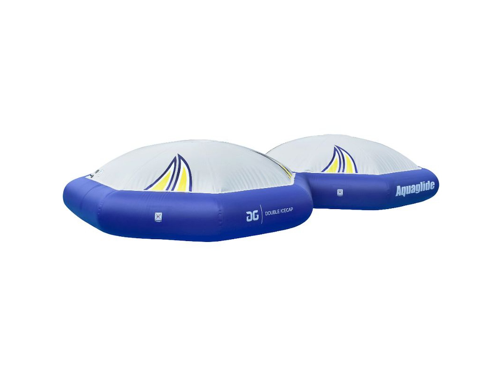 Aquaglide ”Double Icecap” forhindringsmodul til vandparker, som ligner to sneklædte bakker. Når de bliver våde, bliver de meget glatte og udfordrende at balancere på. Kapacitet: 4 brugere. Min. vanddybde: 1,38 m. Egnet til både indendørs bassiner og open water. Mål: L 609 x B 323 x H 95 cm.
