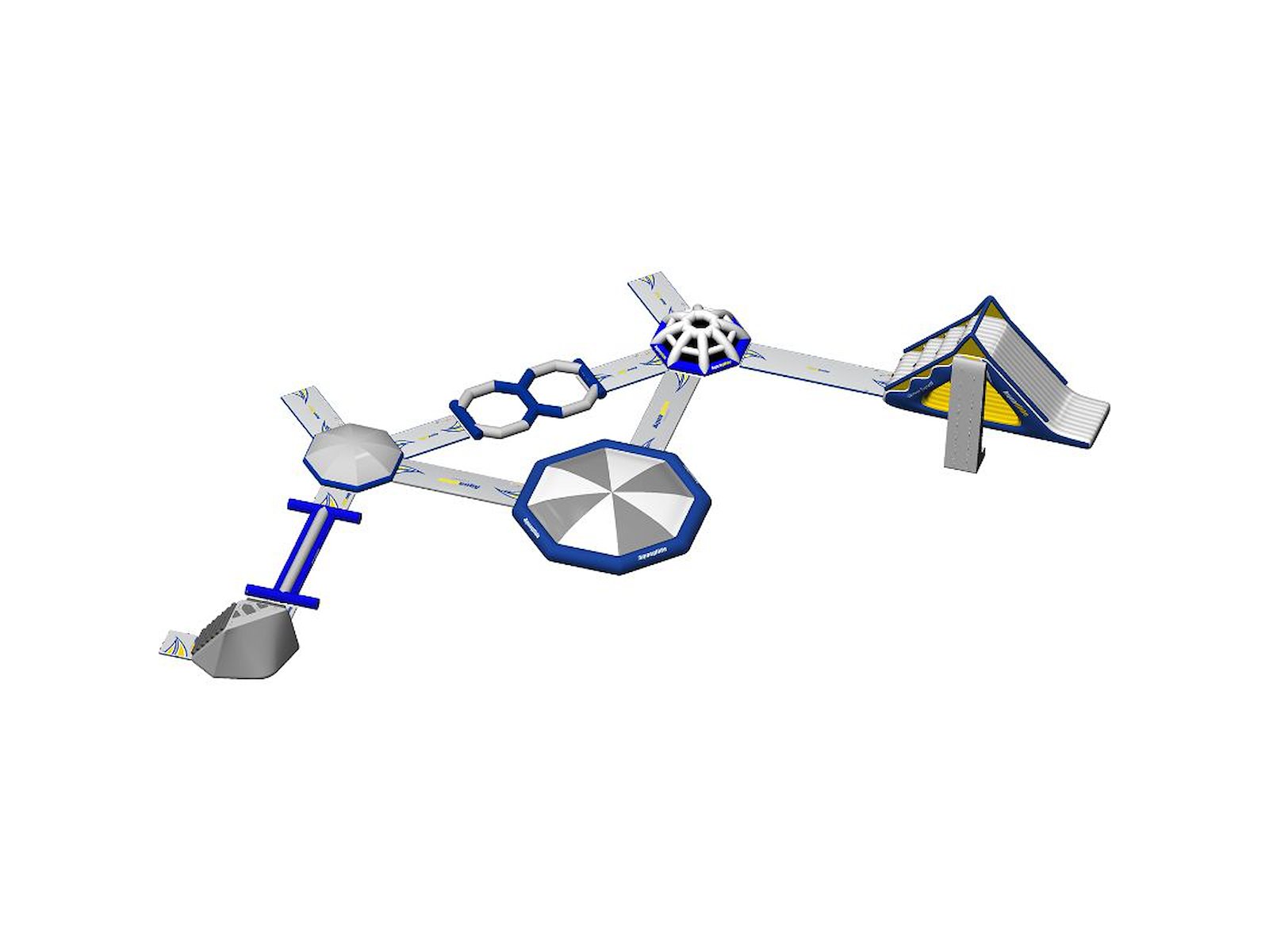 Aquaglide ”Micro XXL60” aktivitetsbane med kompakt design. Kapacitet: 60 brugere. Moduler: Hammer, Summit Express, Escalade Summit, Kaos, Figure 8, I-Beam 20, Monsoon, Universal Thunderdome, Universal Icecap, 1 x Speedway 20, 4 x Speedway 10, 2 x Splashmat og 3 x Swimstep 5x5. Mål: 42,1 x 18,0 m. Vanddybde min. 3,34 m.