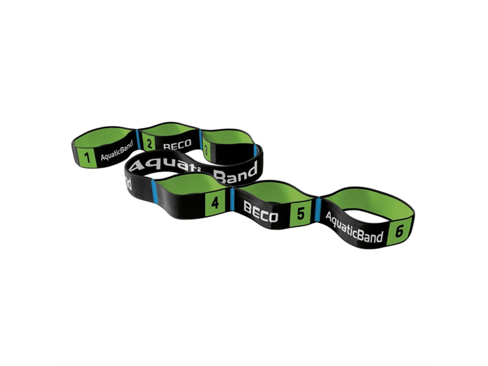 BECO "AquaticBand" ekstremt elastisk og stærkt træningsbånd, som er særligt designet til brug i vand. Båndet kan bruges til en lang række øvelser indenfor aqua fitness til træning af hele kroppen. Båndet er 80 cm langt og opdelt i seks løkker med talmarkering 1-6, som gør det muligt for den enkelte at tilpasse sværhedsgraden.