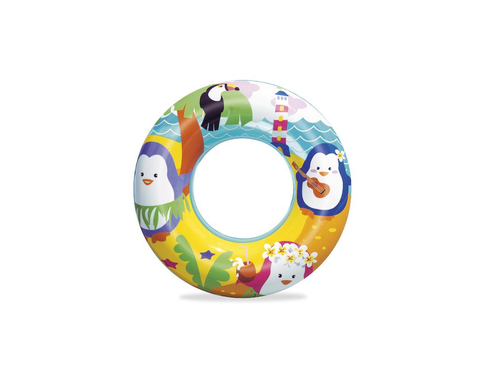 Bestway baderinge med tre forskellige assorterede designs. Med søde havdyr og -figurer. Diameter: 51 cm. Pustes nemt og hurtigt op med munden og kan både bruges indenfor og udenfor. Sælges enkeltvist. Fra Bestway, som er specialister i badedyr og legeudstyr i plast til strand og pool.