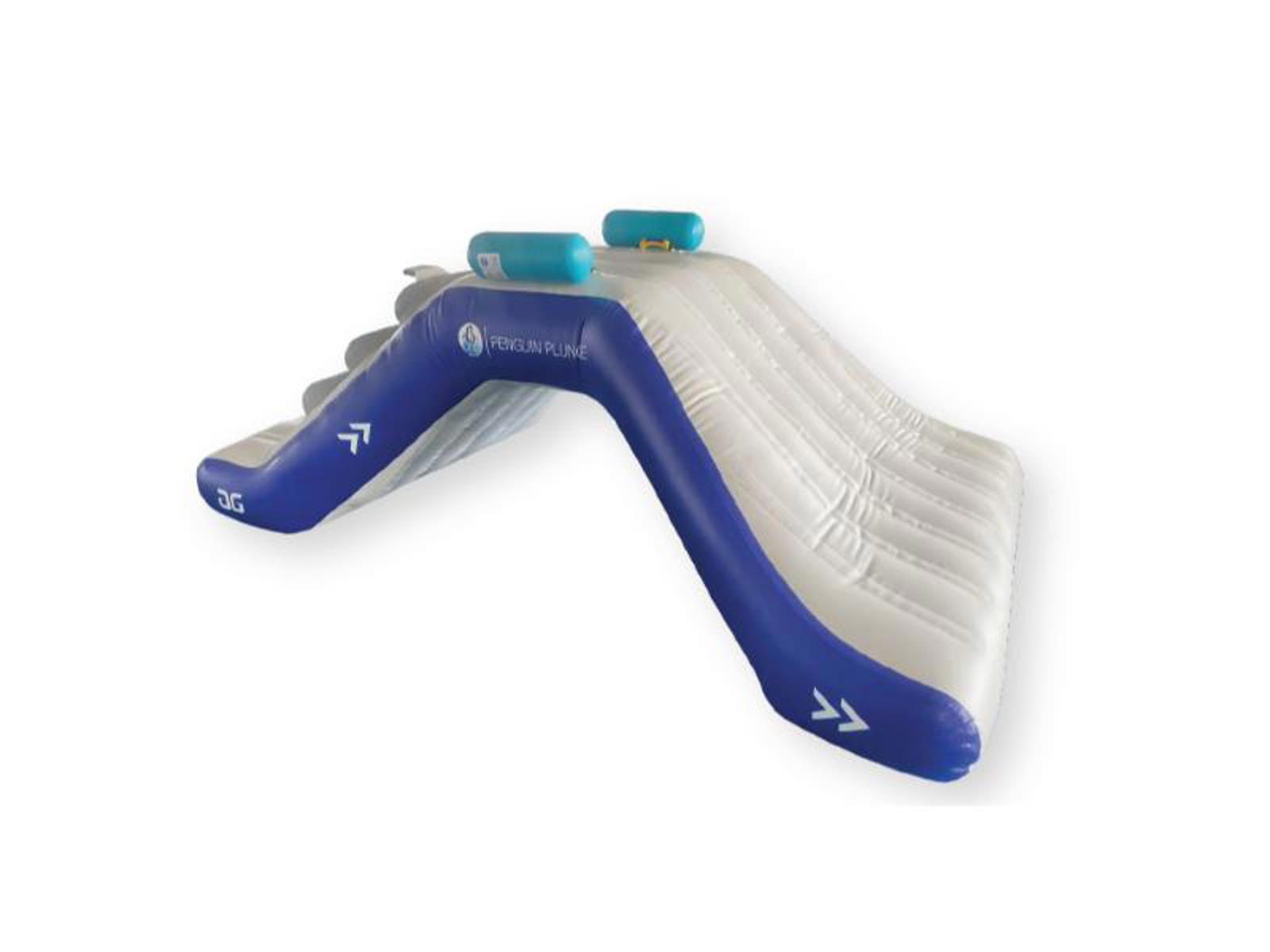 Aquaglide ”Penguin Plunge” rutsjebane til vandpark. Med pingvinen ”Pippa the Penguin”. En del af Aquaglides ”Splash Squad”-serie, som er særligt designet til børn og lavt vand i svømmebadets børnebassin. Med trappe på den ene side og stejl rutsjebane på den anden side. Min. vanddybde: 1,36 m. Sikkerhedsafstand: Kommer senere. Mål: L305 x B180 x H127 cm.