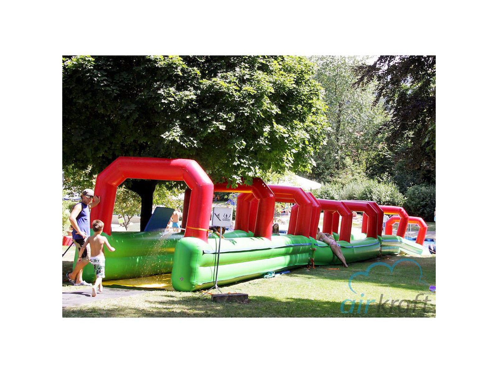 Airkraft skråningsrutsjebane, som produceres efter dine mål og ønsker. Rutsjebanen er beregnet til brug på skråninger ved stranden, havbade, søbade, skovbade eller friluftsbade, hvor der er en naturlig hældning, som rutsjebanen kan bruges på. Fleksibel løsning, som kan forvandle almindelige naturomgivelser til et festligt udendørs badeland.