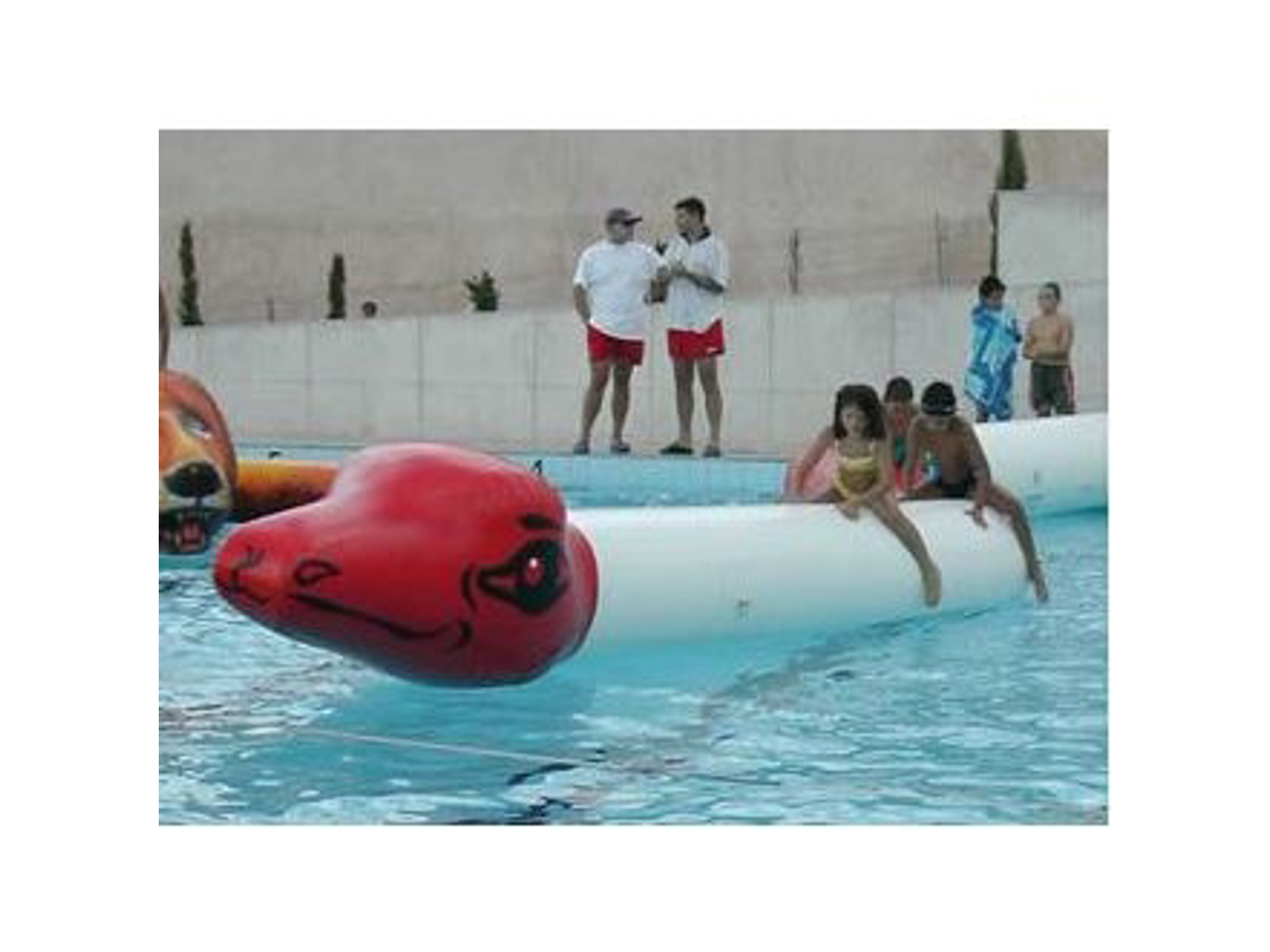 Airkraft oppustelig søslange - et kæmpemæssigt badedyr til svømmehaller, badelande og aquaparker. Søslangen er lidt uhyggelig, men samtidig helt uimodståelig for børn, der vil elske at kravle op og balancere på slangen. Med sin længde på hele 10 meter har slangen plads til mange børn (og voksne) på "ryggen". Mål: L1,0 x B3,4 x H0,6 m.