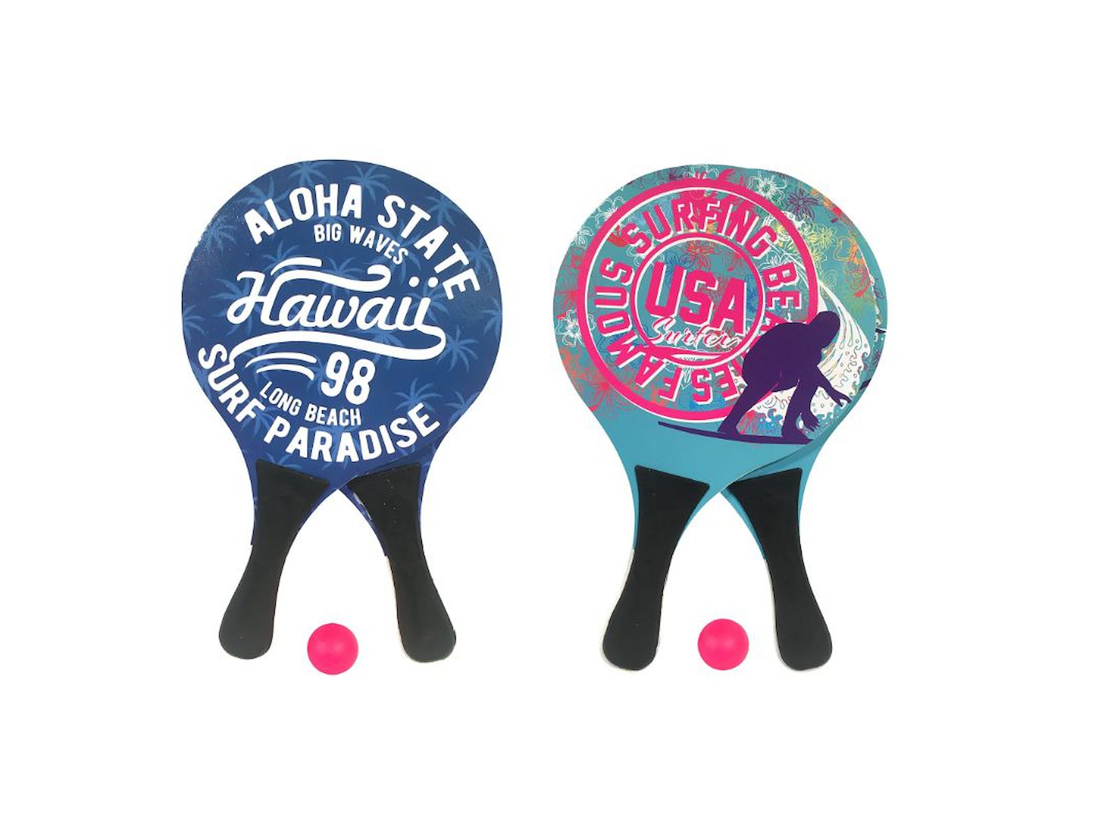 BECO strandtennissæt, som består af to bat og en bold. Fås i to assorterede farver.