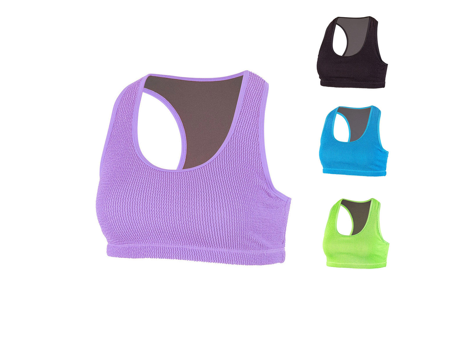 BECO "Crinkle" bikinioverdel til kvinder. Sporty design med racerback. Lavet i blødt og superelastisk crinklestof i 95% polyester 5% elastan. Fuldt foret (100% polyester). Fås i fire flotte farver.