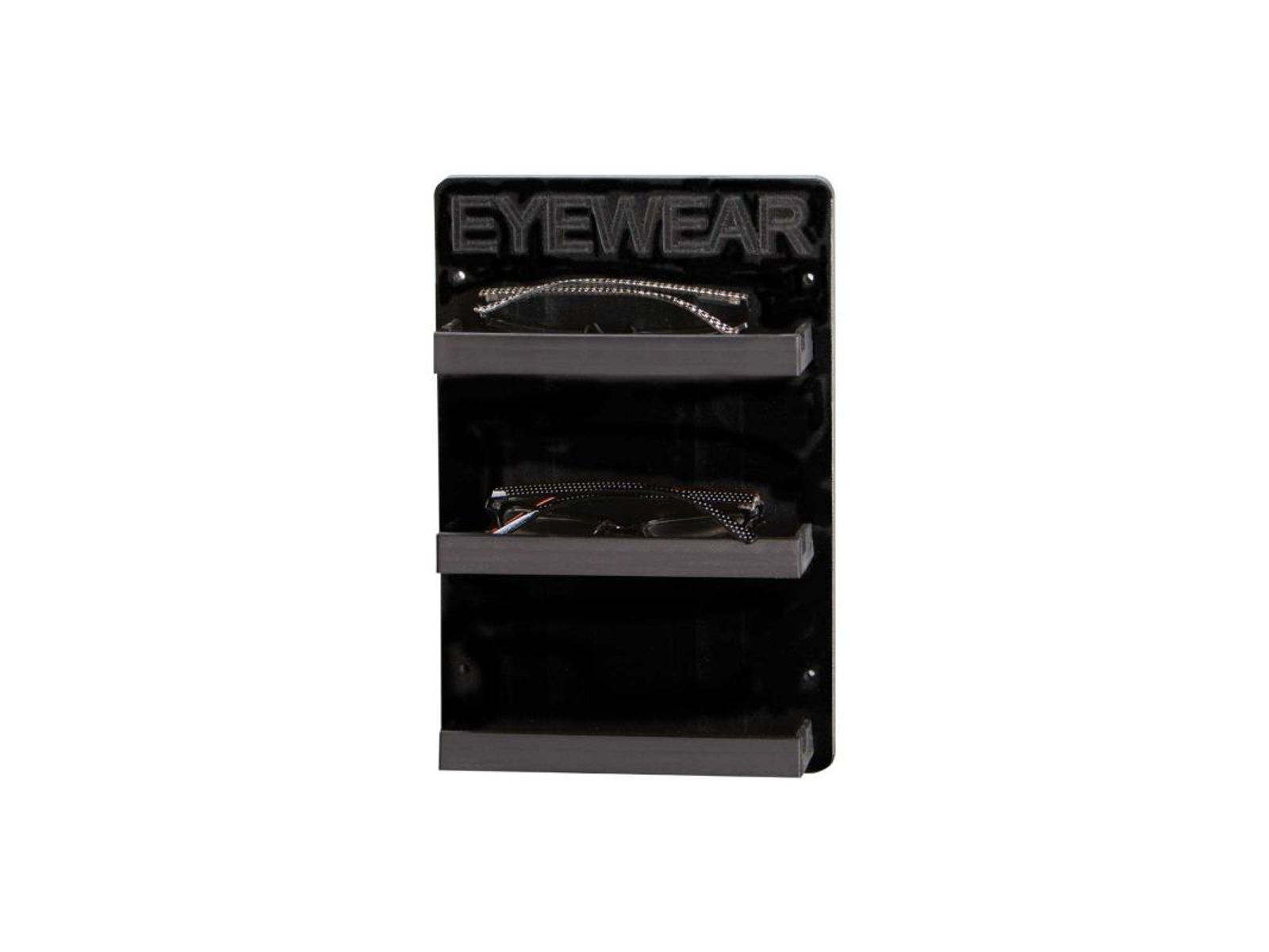 Malmsten brillehylde til baderum i f.eks. badelande, svømmehaller, campingpladser, skoler, idrætshaller og fitnesscentre. Med teksten "EYEWEAR". Lavet i slidstærk, sort PE-plast. Hygiejnisk og nem at rengøre. UV-behandlet. B200 mm. Laves på bestilling med 3-5 hylder. Kontakt os for at aftale antal hylder.