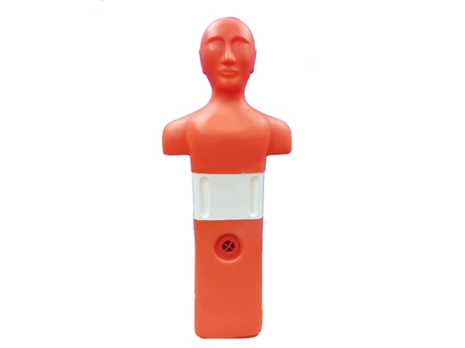 Bjærgdukke til træning af livreddere. Med orange signalfarve, som ses tydeligt i vandet. Længde: 100 cm. Vægt: 6 kg.