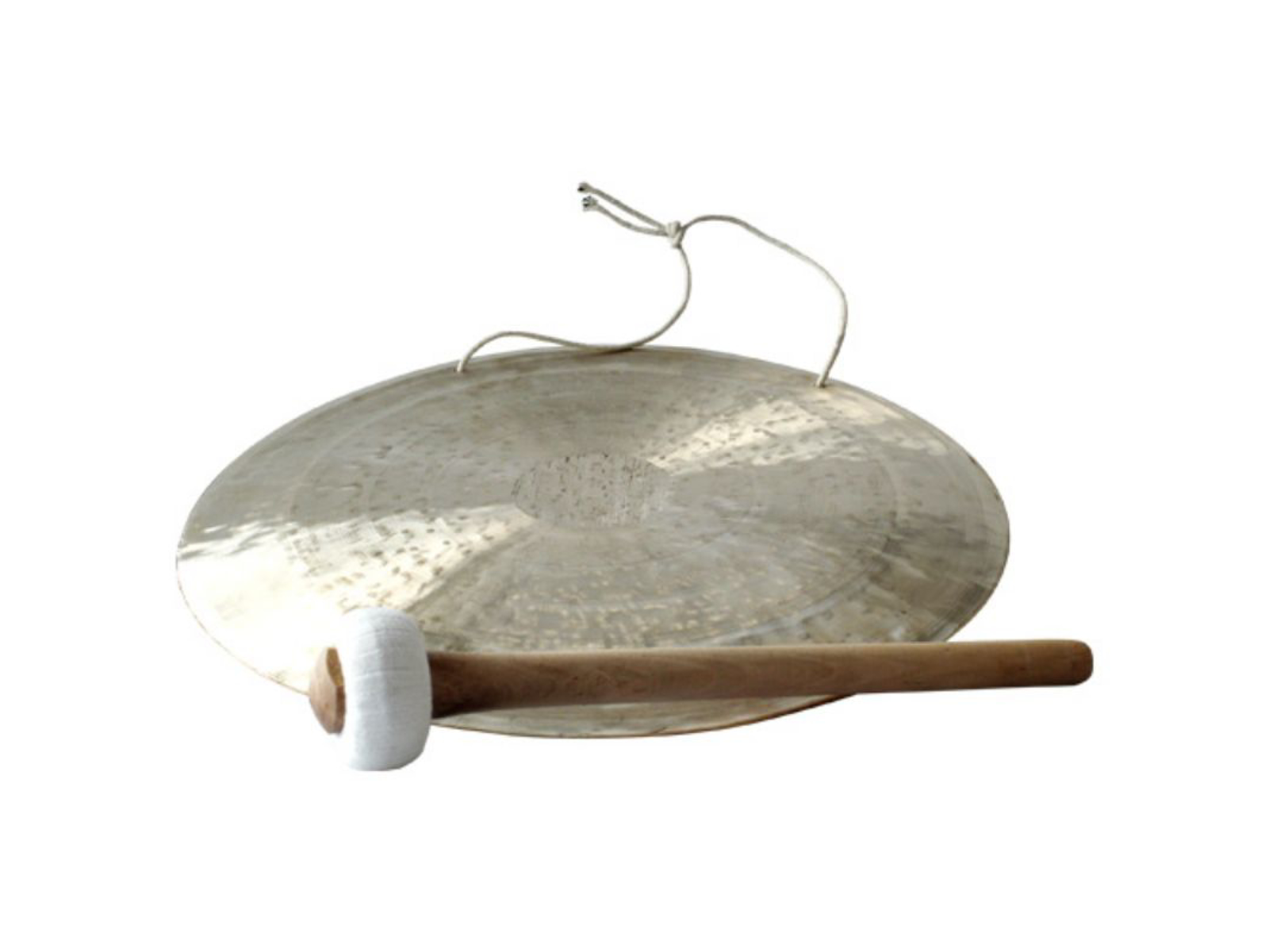 Finnsa ”Feng gong med ophæng Ø 50 cm” ægte, håndlavet Feng gong med gode lydegenskaber. Hvert stykke er unikt. Med hængende snor og stav