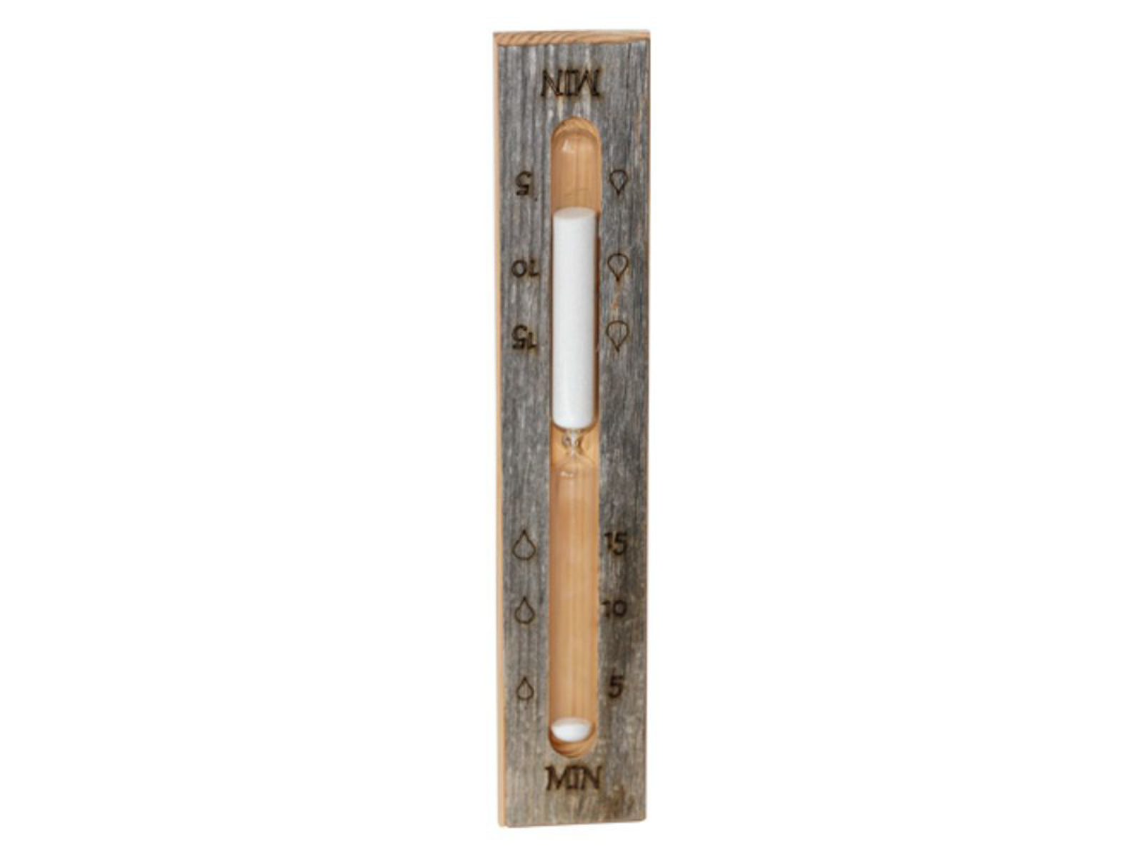 Finnsa ”Sandur 15 min. Hvidt sand” rustikt sandur udført i gammelt finsk Kelotræ. Passer perfekt i rustikke saunaer. Mål: 6 cm bred, 34 cm lang, 2 cm tyk.