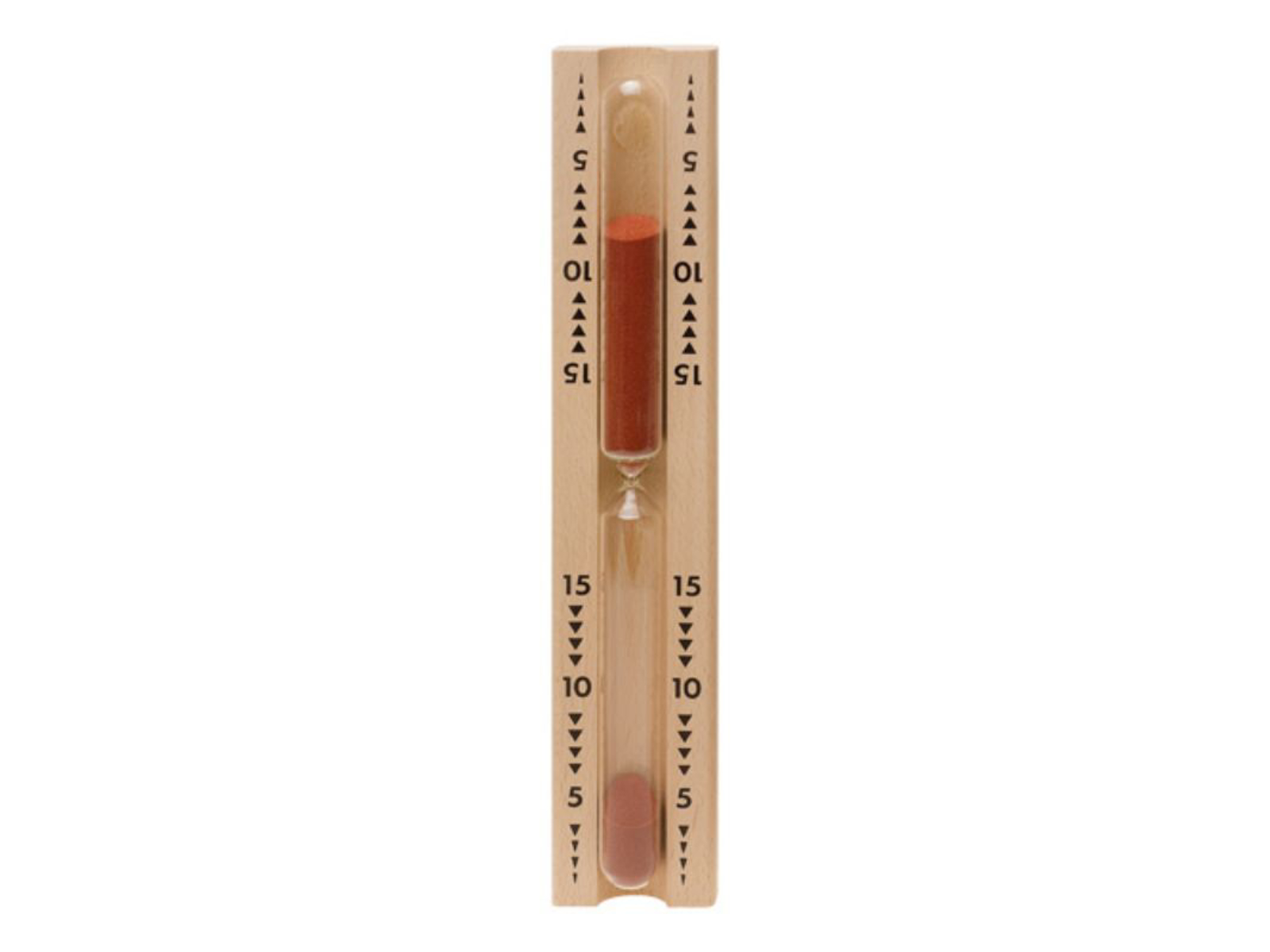 Finnsa ”Sandur special, 15 min” klassisk sandur. Da sand er et naturprodukt, er nøjagtig driftstid udfordrende på grund af den individuelle form på hvert enkelt sandkorn. Der kan desværre være en tids tolerance på 2 minutter. Fås i sandfarverne, blå, grøn, hvid eller rød.