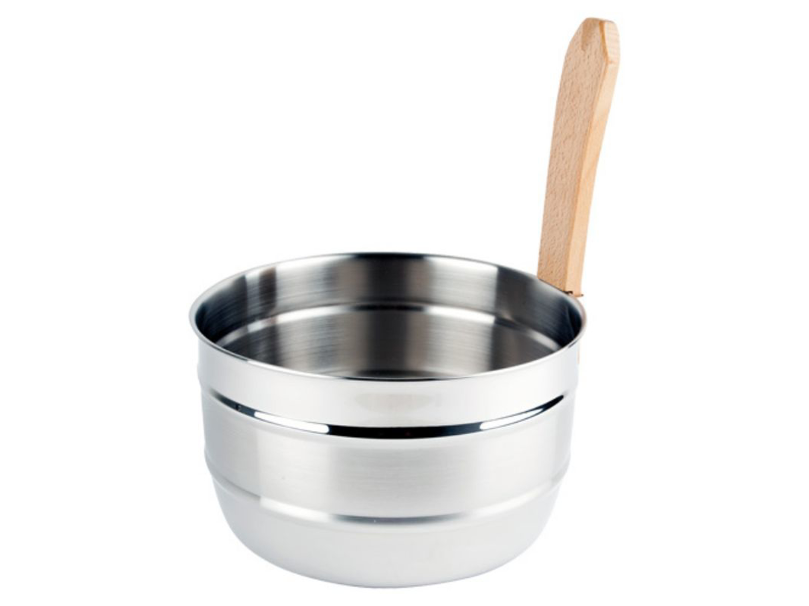 Finnsa ”Saunaspand i rustfrit stål - 4,5 L” af høj kvalitet. Højde 14 cm. Træhåndtagstav ca. 29 cm. Diameter top ca. 22 cm. Bund 20 cm. Kapacitet ca. 4,5 liter.