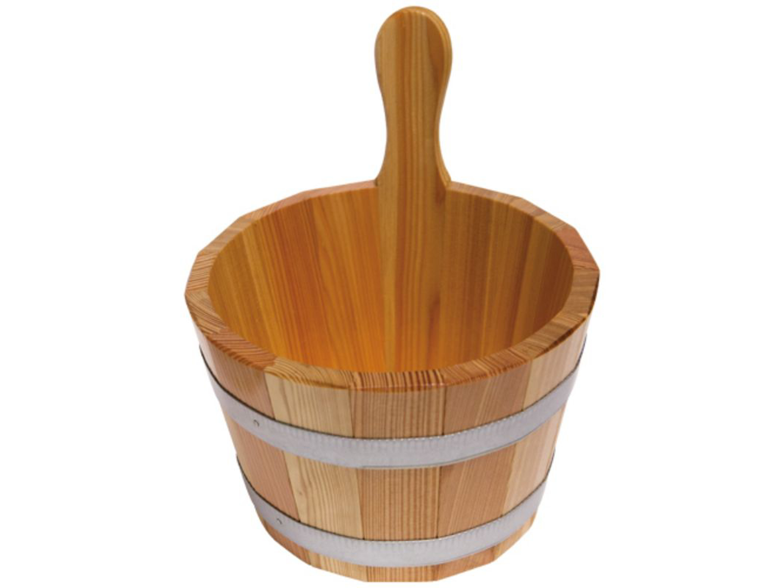 Finnsa "Saunaspand i lærketræ 4 L med hygiejneforsegling", der forhindrer fugtoptagelse. Bundet med 2 metalringe og udstyret med en solid gribedaube. Perfekt til enhver sauna. Mål: Højde 15,5 cm, Ø øverst 24,5 cm, Ø nederst 21 cm. Kapacitet 5 liter.