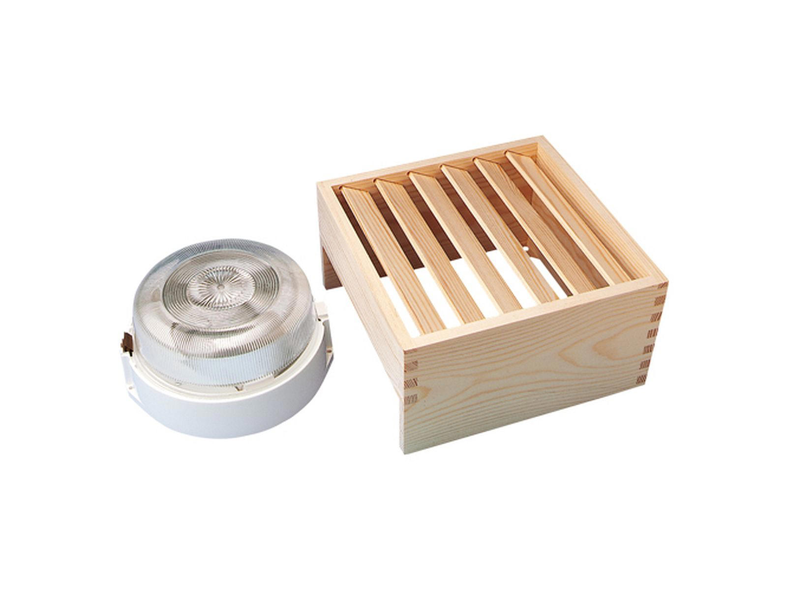 Finnsa ”Sauna-væglampe Quardro, komplet” forbedr din saunaoplevelse med denne tidsløse væglampe. Den er varmebestandig op til 125 grader og bruger E27 fatning til 40-60W pærer. Den skaber perfekt stemning med sin karakteristiske belysningseffekt og elegante design. Glasskærm Ø 19,4 cm. Mål: B 25 x H 25 x D 13,5 cm.