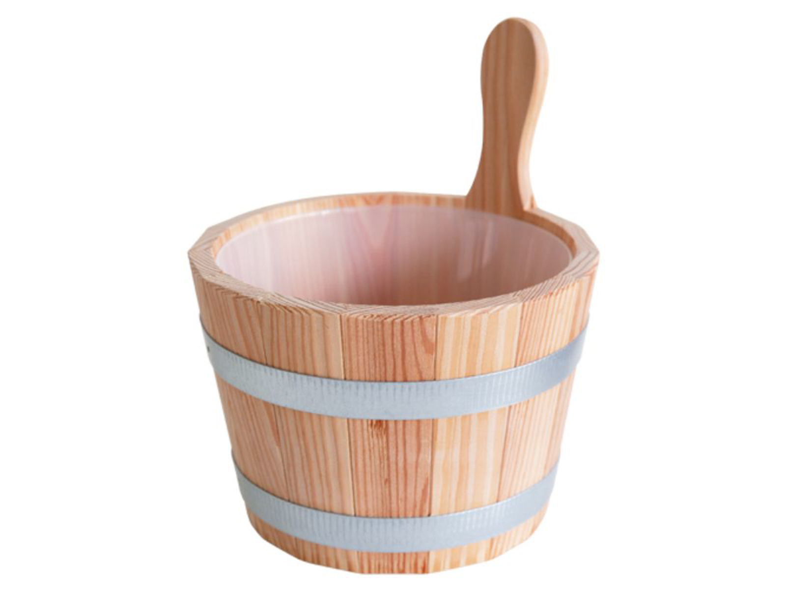 Finnsa "Saunaspand 5 L med 4,5 L indsats" solidt, tungt design bundet med 2 metalringe. Denne klassiske saunaspand i det bedste håndværk bør ikke mangle i nogen sauna. Mål: ca. 19,5 cm høj. Håndtagsstav ca. 30 cm høj. Diameter øverst ca. 25 cm, nederst ca. 20,5 cm.