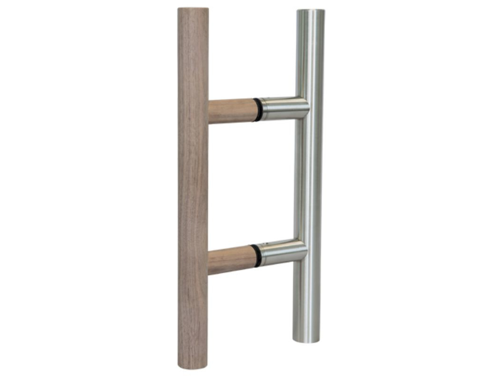Finnsa "Håndtag Rund, rustfrit stål/valnød” praktisk håndtag udført i poleret rustfrit stål og slebet valnød. Velegnet til træ- og glasdøre. Håndtagets længde 350 mm. Standard borehulsafstand 150 mm. Håndtagets diameter er 30 mm. Forbindelsesstangen ø 25 mm. Nødvendigt huldiameter i glasdør er 14 mm.