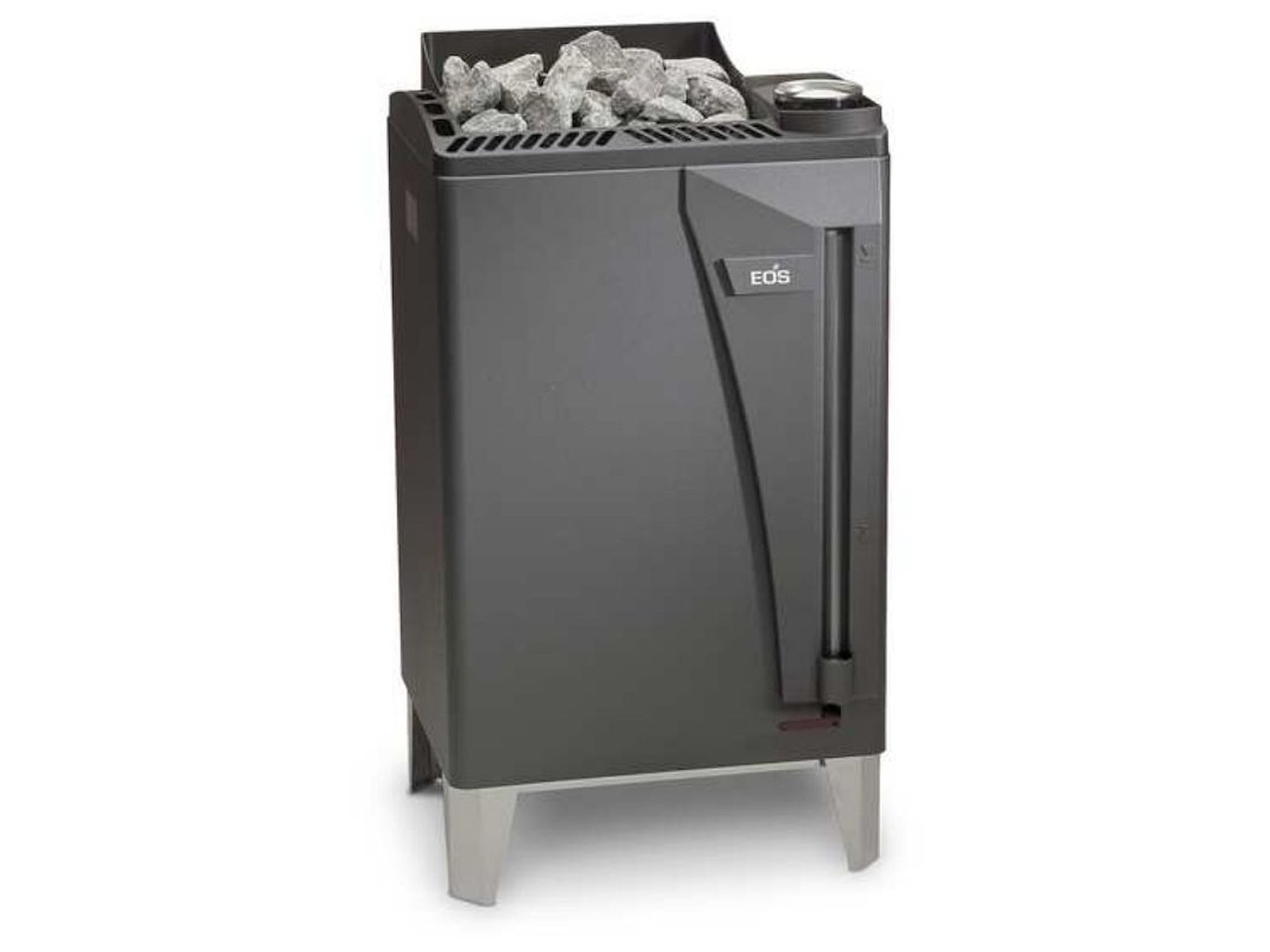 EOS ”Saunaovn Bi-O Max" til kabiner på 9-25 kubikmeter. Med integreret fordamper 2 kW. En fleksibel løsning, til både varmt, tørt og mildt dampklima. Fordamper på højre side af ovnen har integreret urteholder. 8 l vandtank. Robust konstruktion i rustfrit stål/aluminium. Stor stenkurv på 60 kg giver temperaturstabilitet og kraftfulde guseffekter.