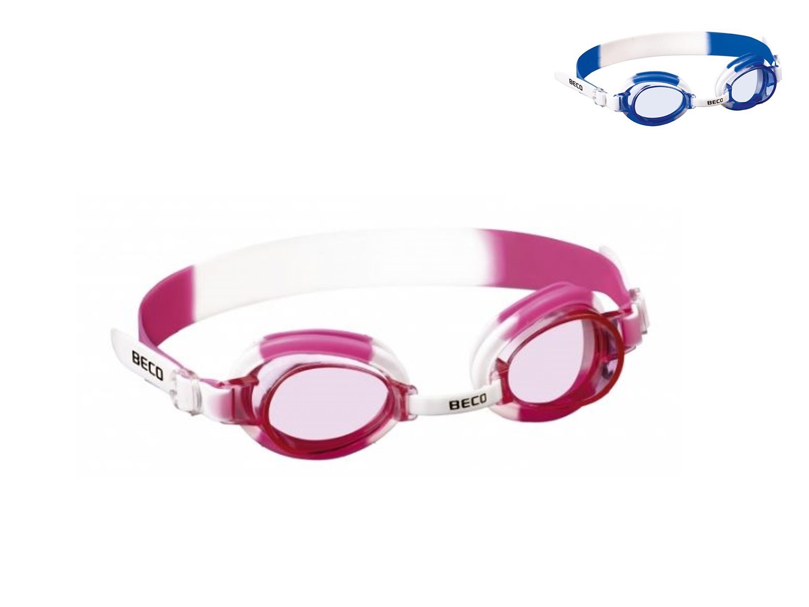 BECO ”Halifax” svømmebriller til børn fra 8 år. Fremstillet i blød silikone og har en bred strop, som gør den meget behagelig at have på. Linserne er klare og behandlet med anti-dug og UV-beskyttelse. Brillen har et fint og sommerligt design med to farver: pink og hvid til piger og blå og hvid til drenge.