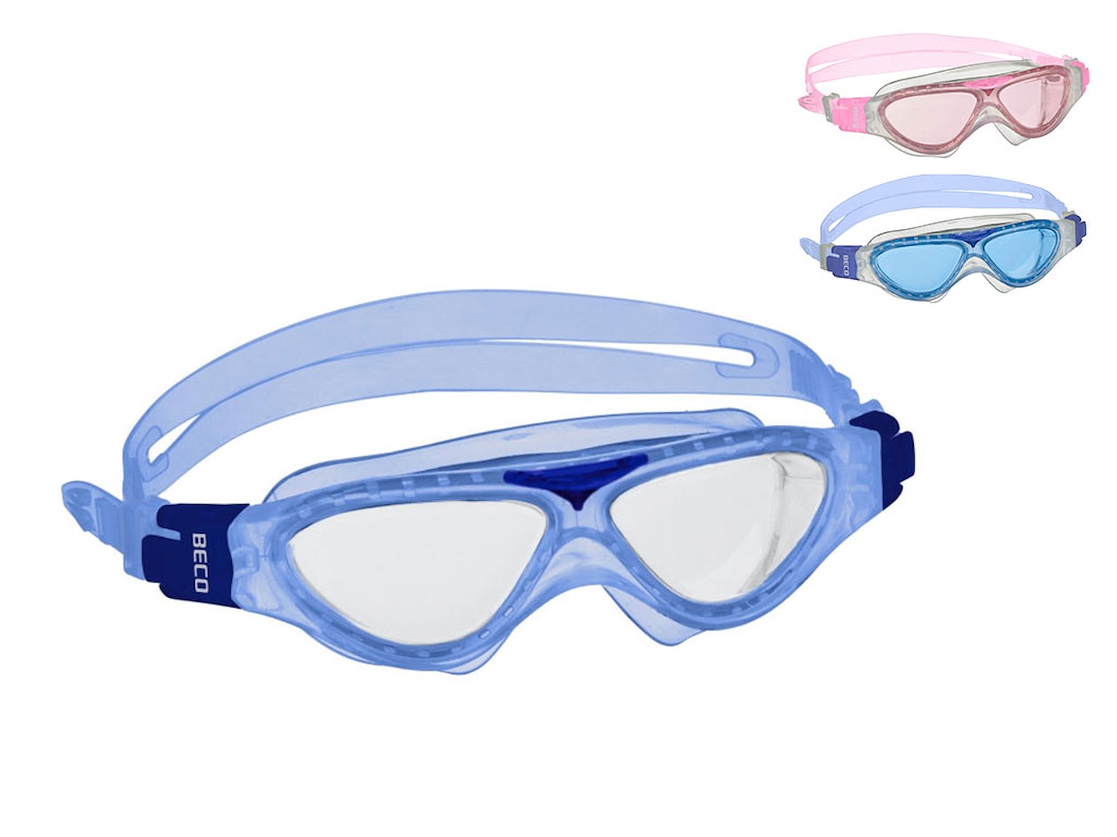 BECO "Toulon" svømmebriller til børn fra 8 år. Med panoramalinse og bred tætning, som sikrer en god pasform. Tonede, anti-dug linser i polykarbonat med UV-behandling. Dobbelt nakkestrop med spænde i siden, som er nem at justere til en behagelig længde. Nakkestrop i silikone og ramme i TPE.