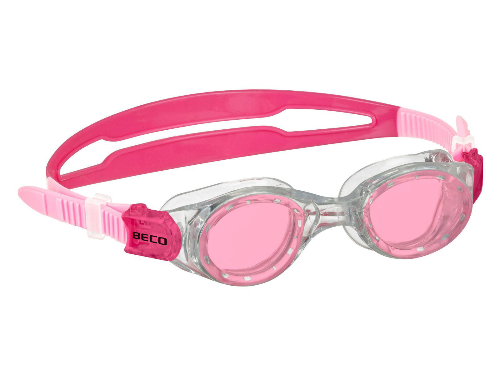 BECO "Vigo" svømmebriller til børn fra 8 år. Blød ramme støbt i ét stykke. Tonede linser i polykarbonat med UV- og antidug-behandling. Dobbelt nakkestrop i blød silikone - meget behagelig at have på. Spænde i siden, som gør det nemt at tilpasse nakkestroppens længde, så svømmebrillen sidder tilpas stramt. Ramme i TPE.