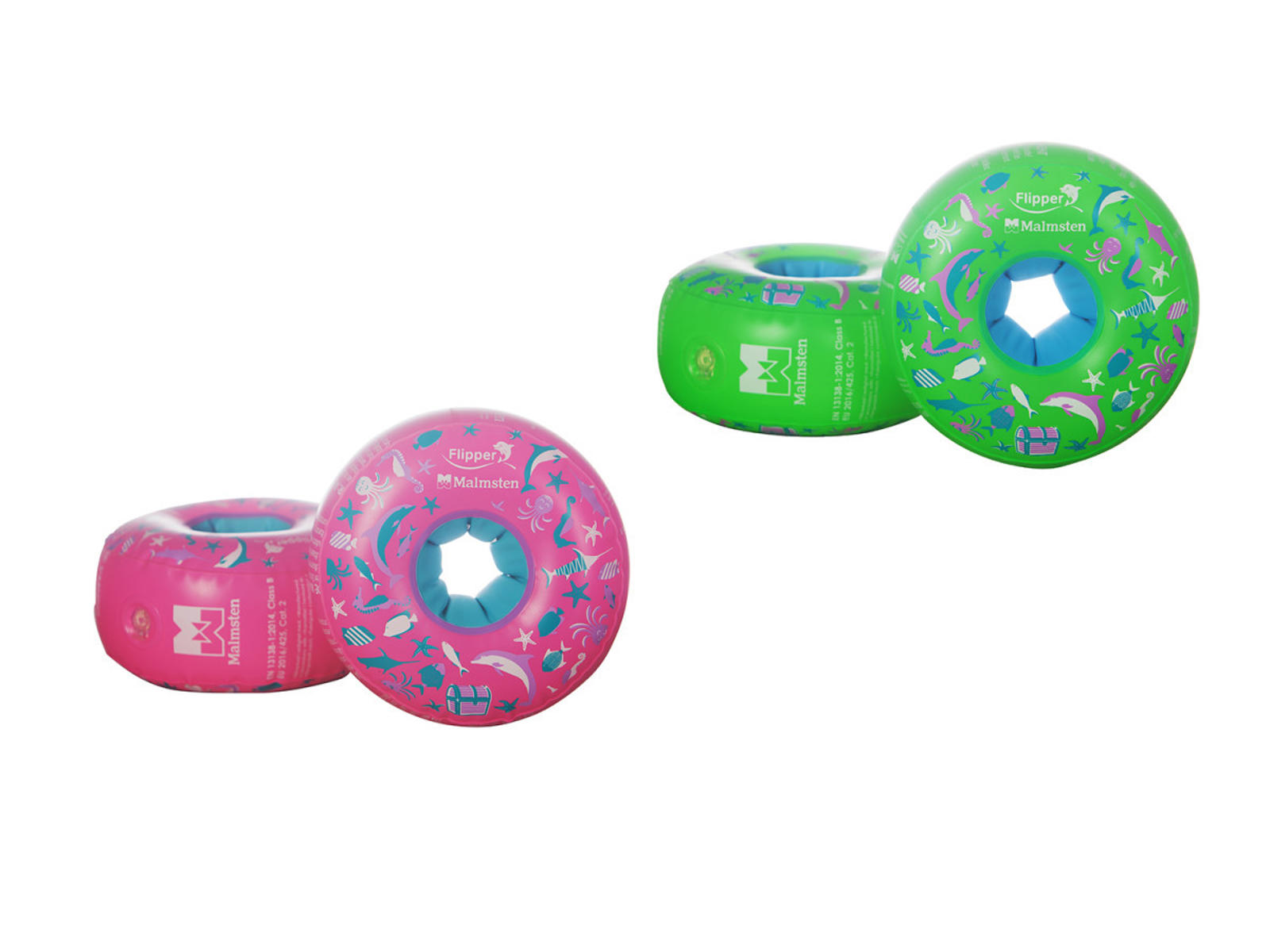 Det unikke hul i midten gør det muligt for barnet at bevæge sig naturligt og komfortabelt i vandet – fremad, oprejst eller tilbagelænet. Fås i grøn eller pink. Flipper Armbands sælges som et par og er ideelle til svømmetræning og øget sikkerhed i vandet.