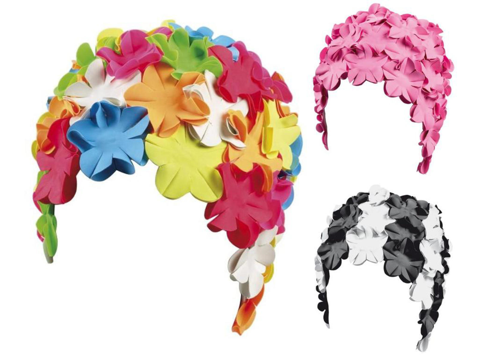 BECO badehætte med blomster i et væld af flotte farver og farvekombinationer - fra stilren stort/hvid, over ensfarvet, til multifarvet. Badehætten er fremstillet i gummi og er velegnet til træningsbrug. Til voksne.